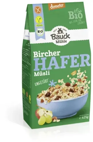 Feinschmecker Lifestyle - - + GRATIS Fruchtiges Frühstücksvergnügen mit Alnatura Müsli Bircher: Das Alnatura Müsli Bircher bringt Ihnen den vollen Genuss eines fruchtigen Frühstücks mit wertvollen Vollkornzutaten und feinen Fruchtflocken.Eine harmonische Mischung aus Vollkorn und FrüchtenDas Alnatura Müsli Bircher ist eine wohlschmeckende Kombination aus verschiedenen Vollkornflocken und fruchtigen Zutaten. Dank der ausgewogenen Mischung aus Hafervollkornflocken, Weizenvollkornmehl und Dattelsaftkonzentrat bieten die 3-Fruchtflocken ein unvergleichliches Geschmackserlebnis. Geröstete Haselnüsse, getrocknete Apfelstücke und Sultaninen runden das Aroma harmonisch ab.Vielfalt in der ZubereitungMit dem Alnatura Müsli Bircher genießen Sie Flexibilität in der Zubereitung. Vermischen Sie einfach die gewünschte Menge mit Milch oder Joghurt und lassen Sie es für zehn Minuten quellen. Für eine besonders fruchtige Note können Sie nach Belieben Orangensaft, geriebenen Apfel oder frische Früchte hinzufügen.Qualität aus biologischer LandwirtschaftDie Zutaten des Alnatura Müsli Bircher stammen aus biologischem Anbau und tragen das Bio Zertifikat DE-öKO-001. So können Sie sicher sein, ein Produkt zu wählen, das sowohl Geschmack als auch Qualität vereint. Diese sorgsam ausgewählten Zutaten unterstützen zudem eine bewusste und gesunde Ernährung.Genießen Sie das fruchtige Alnatura Müsli Bircher für einen perfekten Start in den Tag und erleben Sie die Köstlichkeit eines Bio-zertifizierten ... ![]() ![]() Bauckhof Bircher Hafer Müsli ungesüßt demeter