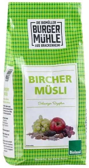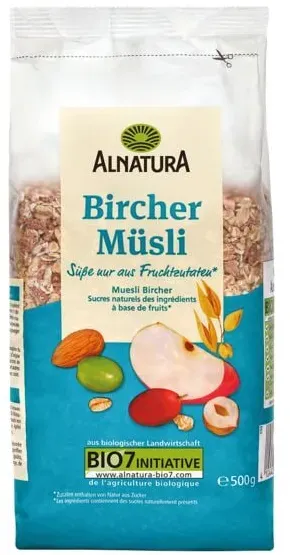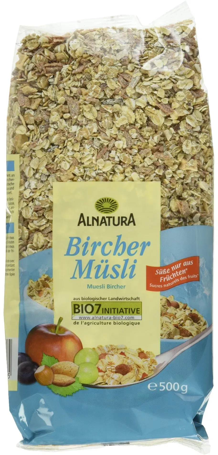 6.58 /kg - Kategorie: Sportnahrung - burgermühle - GTIN:4022381023702 - Bircher Müsli nach Schweizer Rezeptur aus besten Bio-Zutaten hergestellt. - 3,29 Euro bei naturPur - gefunden von billiger.de ![]() ![]() Alnatura Bio Bircher Müsli 500,0 g
