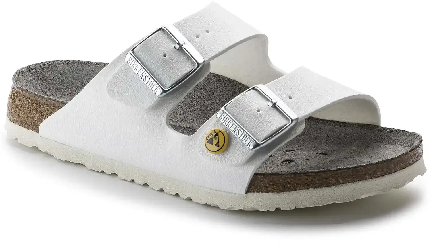 9 Händlerangebote bei billiger.de - Kategorie: Pantoletten - Birkenstock - Besonders die Arbeit mit sensibler Hochfrequenztechnik und elektrischen Bauteilen erfordert ausgeprägte Schutzmaßnahmen. In Verbindung mit der professionellen ESD-Ausstattung des Arbeitsplatzes schützen die ESD-Modelle effektiv vor gefährlichen Entladungen. Merkmale: anatomisch geformtes Kork-Latex-Fußbett verstellbare Dornschnalle aus Metall zwei Schuhweiten (normal/schmal) - GTIN:4052001199722 Eine Arizona mit Weichbettung in Schwarz, die zusätzlichen Komfort für empfindliche Füße bietet. ![]() ![]() Birkenstock Arizona Weichbettung Birko-Flor schmal schwarz 37