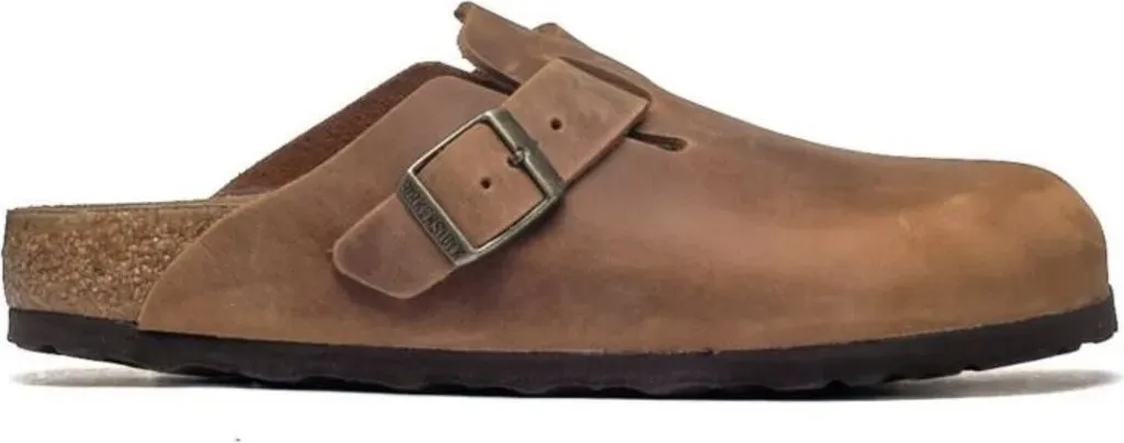 Kategorie: Hausschuhe - Birkenstock - GTIN:4061417975660 - Der BIRKENSTOCK Boston Clog ist ein echter Klassiker, den man das ganze Jahr über tragen kann. Diese Version im Vintage-Stil ist perfekt für alle, die einen Schuh suchen, der vom ersten Tag an eine dezente Patina aufweist. Die Struktur des weichen, hochwertigen Naturleders ist in diesem Fall perfekt. Ein Highlight und funktionales Detail ist die flexible Zwei-Komponenten-Sohle aus EVA und Gummi. Anatomisch geformte Kork-Latex-Einlegesohle Obermaterial: Naturleder Obere Einlegesohle: Wildleder Laufsohle: EVA; Naturkautschuk Details: Riemen mit Metallstiftschnalle mit individueller Anpassung 'Hergestellt in Deutschland. Ref.: 1023449, Außenmaterial: Leder, Farbe: Braun, Absatzhöhe: Wohnung, Schließen: Schnalle, Stil: Lässig - 128,00 Euro bei Esdemarca - gefunden von billiger.de Ein hochwertiger Boston Clog aus geöltem Leder, der mit der Zeit noch schöner wird. ![]() ![]() Birkenstock Boston geöltes Leder Herren Clogs, Größe:40 EU - Braun - 40