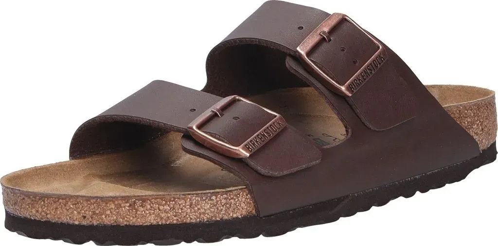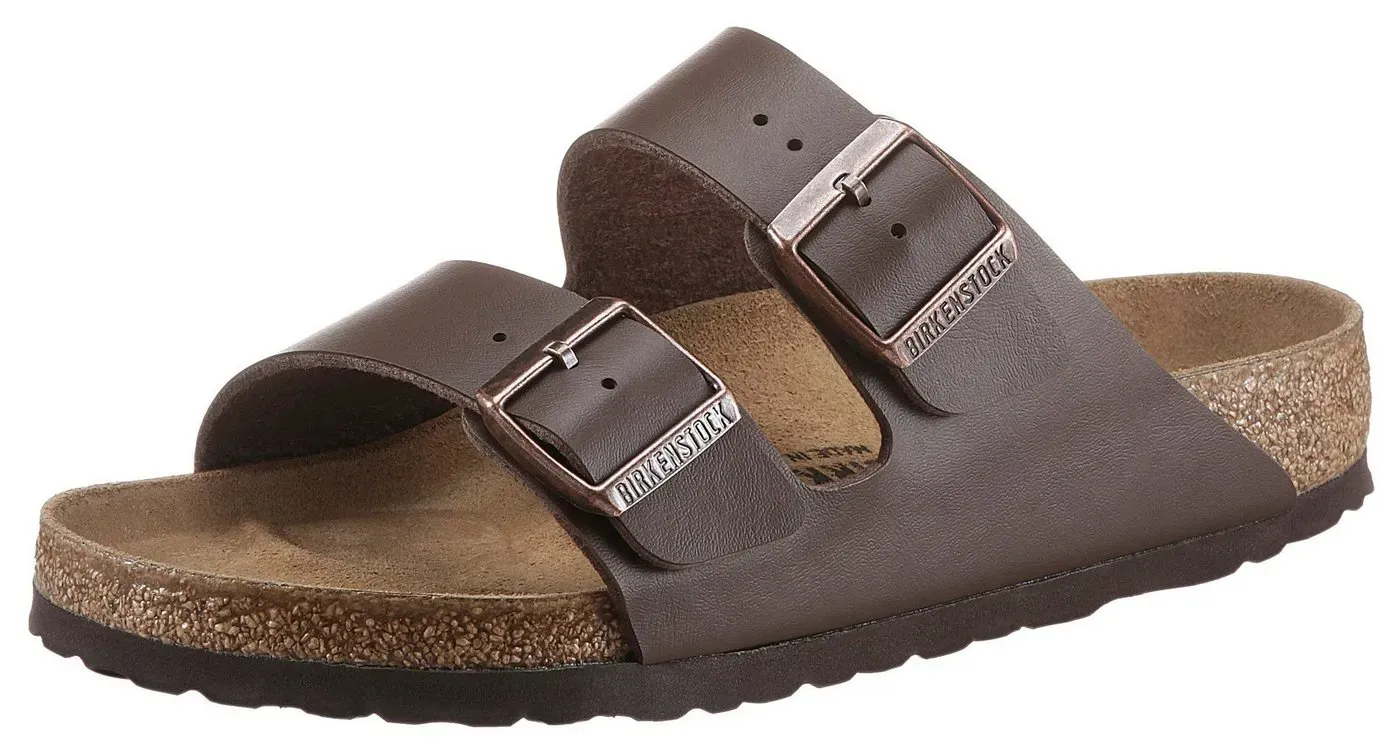 Kategorie: Pantoletten - Birkenstock - GTIN:4013871034735 - Der BIRKENSTOCK Arizona ist ein echter Klassiker, der seit Jahrzehnten bei Frauen und Männern gleichermaßen beliebt ist. Die individuell verstellbare Sandale mit zwei Riemen ist zum Kultschuh geworden. Das Obermaterial besteht aus hautfreundlichem und strapazierfähigem Birko-Flor und präsentiert sich hier in einer eleganten Nubuk-Optik. Anatomisch geformter Kork-Latex-Boden Obermaterial: Birko-Flor Innensohle: Wildleder Sohle: EVA Details: Riemen mit zwei individuell verstellbaren Metallschnallen 'Hergestellt in Deutschland Obermaterial: Birko-Flor Nubuk Mit dem Birko-Flor Nubuk-Material ist es gelungen, die Haptik von echtem Nubukleder nahezu perfekt zu imitieren. Innensohle: Obere Schicht der Lederdecksohle Material der Innensohle: Kork Laufsohle: EVA. Ref.: 51701, Farbe: Braun, Absatzhöhe: Wohnung, Schließen: Keine, Stil: Lässig, Außenmaterial: Synthetisch - 71,90 Euro bei Esdemarca - gefunden von billiger.de Dieses Angebot ist mit 73.93 Euro sehr preiswert für Birkenstock Classic Arizona Birko-Flor Pantoletten in Dunkelbraun, Größe 40. ![]() ![]() BIRKENSTOCK Classic Arizona Birko-Flor, Unisex-Erwachsene Pantoletten, Braun (Dunkelbraun), 40 EU - 40 EU