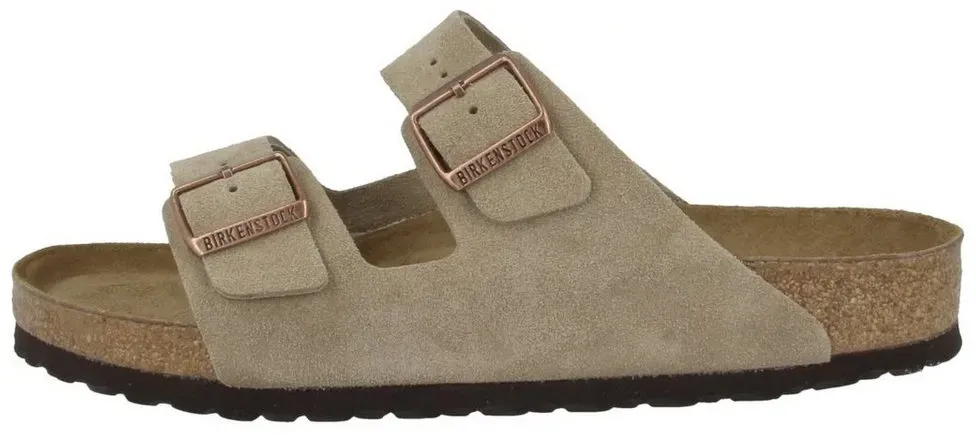 7 Händlerangebote bei billiger.de - Kategorie: Pantoletten - Birkenstock - Der Arizona von BIRKENSTOCK ist ein echter Klassiker, der seit Jahrzehnten Frauen und Männer gleichermaßen begeistert. Die schlichte Zwei-Riemen-Sandale ist ein Synonym für zeitloses Design und längst zum Kultschuh geworden. Das weiche Fußbett sorgt dank der zusätzlichen Schaumstoffschicht für zusätzlichen Komfort und verwöhnt den Fuß den ganzen Tag lang. Das Obermaterial besteht aus sehr dickem, geöltem Nubukleder, das an den Rändern nahtlos ist. Original BIRKENSTOCK Weichfußbett; anatomisch geformt. Obermaterial: geöltes Nubukleder Obere Einlegesohle: Wildleder Sohle: EVA Details: zwei Riemen mit je einer individuell verstellbaren Dornschließe aus Metall 'Hergestellt in Deutschland Besonderheit: weiche Innensohle Die weiche Einlegesohle hat eine in die Innensohle integrierte Latexschaumpolsterung. So genießt der Träger vom ersten Tag an ein besonderes Tragegefühl. Obermaterial: Geöltes Leder Innensohle: Obere Schicht der Lederinnensohle Material der Innensohle: Kork Laufsohle: EVA. Ref.: 552811, Außenmaterial: Leder, Farbe: Braun, Absatzhöhe: Wohnung, Schließen: Keine, Stil: Lässig - GTIN:4052001263461 Diese Sandale aus Veloursleder in Taupe bietet eine weiche Haptik und ist eine beliebte Farboption. ![]() ![]() Birkenstock Arizona Weichbettung Veloursleder taupe 43