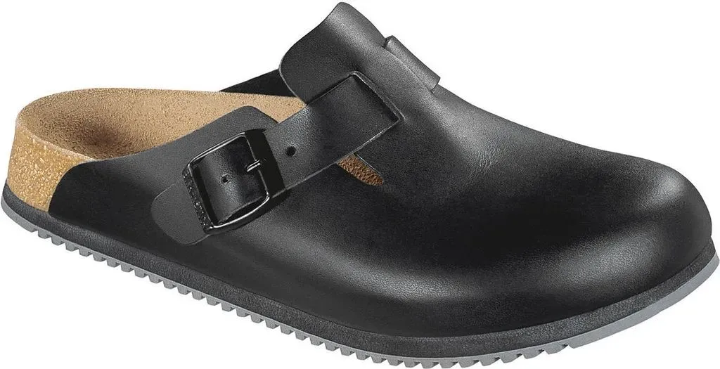 Kategorie: Herren-Hausschuhe - Birkenstock - GTIN:4013871900320 - Birkenstock Boston SL Pantolette schwarzDieses Modell ist ein echter Klassiker, den Sie das ganze Jahr über tragen können. Das Obermaterial besteht aus hochwertigem Leder. Die besonders atmungsaktive Oberfläche ermöglicht auch bei starker körperlicher Aktivität ein angenehmes Fußklima.MaterialFolgende Materialien wurden für die Herstellung der Birkenstock Schuhe verwendet:* Obermaterial: Naturleder* Innensohle: Veloursleder* Laufsohle: EVA - geprüft nach EN ISO 20347:2012 SRC* Anatomisch geformtes Kork-Latex-Fußbett mit LederbezugAnwendungsbereicheDer Schuh eignet sich nicht nur ideal für den Beruf sondern auch für diverse Tätigkeiten im privaten Umfeld. Besondere EigenschaftenDie Schuhe überzeugen dank der besonderen Materialzusammensetzung durch hohen Komfort und Strapazierfähigkeit.AltersgruppeDie Hauptzielgruppe der Schuhe sind Erwachsene. Hochwertige, bequeme Clogs mit Naturkork-Fußbett, das sich dem Fuß anschmiegt für optimalen Halt und Bewegungsfreiheit. Das dicke Leder ist stark und dennoch geschmeidig, während die flexible, leichte Sohle für Komfort und Belüftung sorgt. Wichtige Produkteigenschaften: SRC Rutschfeste Super Grip-SohleAnatomisch geformtes Kork-Latex-FußbettVerstellbarer Riemen und Schnalle für sicheren SitzReguläre PassformIn übereinstimmung mit EN ISO 20347:2012 PSA-Sicherheitsschuhgesetzgebung, sowie öl- und fettbeständigSchockabsorbierende EVA-Zwischensohle, die porös und abriebfest ... ![]() ![]() Birkenstock Clog - Boston Super eBay Grip, Naturleder, weiß, Weite schmal, Größe 44