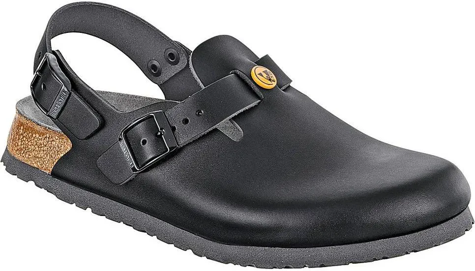 Kategorie: Arbeits- & Schutzkleidung - Birkenstock - GTIN:4052001199241 - Der Klassiker mit Fersenriemen Die ESD-Sandalen MILANO ESD von Birkenstock sind bequeme Begleiter für Arbeiten in der Mikroelektronik-Branche. Das Obermaterial der Sandalen ist aus synthetischem Birko-Flor gefertigt, welches mit seiner hohen Langlebigkeit und pflegeleichten Eigenschaften glänzt. Die Laufsohle der Schuhe ist aus griffigem EVA gefertigt, welches Ihnen hervorragenden Grip auf flachen Untergründen bietet. Gleichzeitig sind die Sandalen mit dem bewährten Kork-Latex-Fußbett von Birkenstock ausgestattet, welches Ihnen sicheren Halt, hohen Tragekomfort und anatomische Fußunterstützung bietet. Um den Komfort nochmals zu erhöhen sind die Schuhe mit einer Decksohle aus Veloursleder ausgestattet. Dank des ESD-Zertifikats gemäß der EN 61340 können die Schuhe problemlos in elektrostatisch empfindlichen Bereichen verwendet werden. Für zusätzlichen Schutz sind die Sandalen mit einem Fersenriemen versehen, welcher zusätzlichen Umknickschutz bietet. Für die optimale Passform können alle drei Riemen über Dornschnallen aus Metall individuell verstellt werden. Besonderheiten ESD-Zertifikat Bewährtes Birkenstock Kork-Fußbett Fersenriemen für zusätzlichen Halt Griffige EVA-Laufsohle Leder-Decksohle für zusätzlichen Komfort Spezifikationen Obermaterial: Birko-Flor , synthetisch Laufsohle: EVA mit Hallenprofil Fußbett: Kork Decksohle: Veloursleder Sicherheitsklasse: EN 61340 - ESD Weite: Normal - 87,90 Euro ... Die Tokio ESD-Sandalen für 89.90 Euro sind eine gute Wahl für diejenigen, die zusätzlichen Halt durch einen Fersenriemen wünschen. ![]() ![]() Birkenstock, Sicherheitsschuhe, Tokio ESD-Sandalen (40)