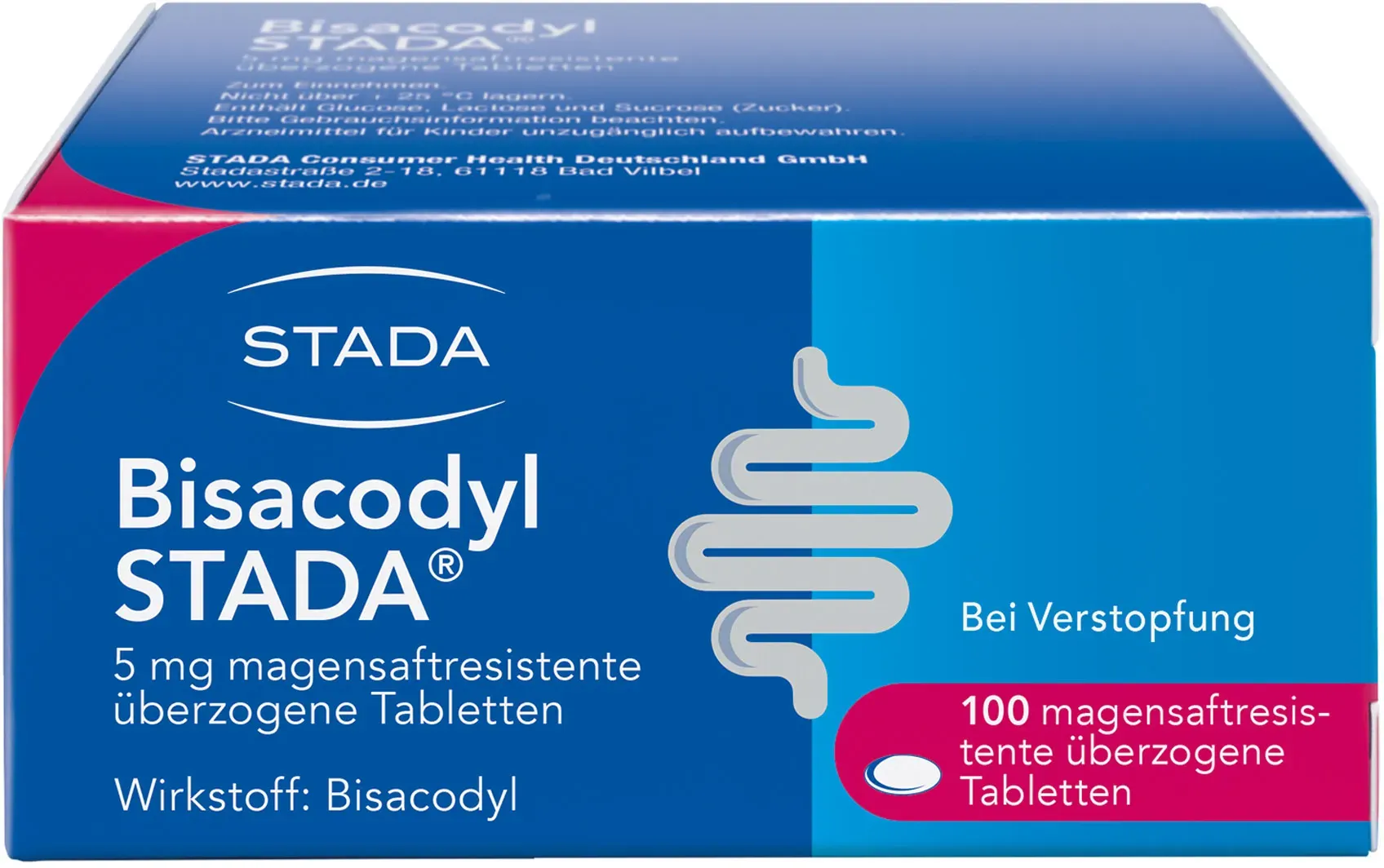 STADA Consumer Health - Bisacodyl Stada 5 mg magensaftresistente überzogene Tablette, 100 St - bei claras-apotheke.de - aus Yadore Produktdaten ![]() ![]() Bisacodyl STADA 5 mg magensaftres.überzog.Tabl. 100 St