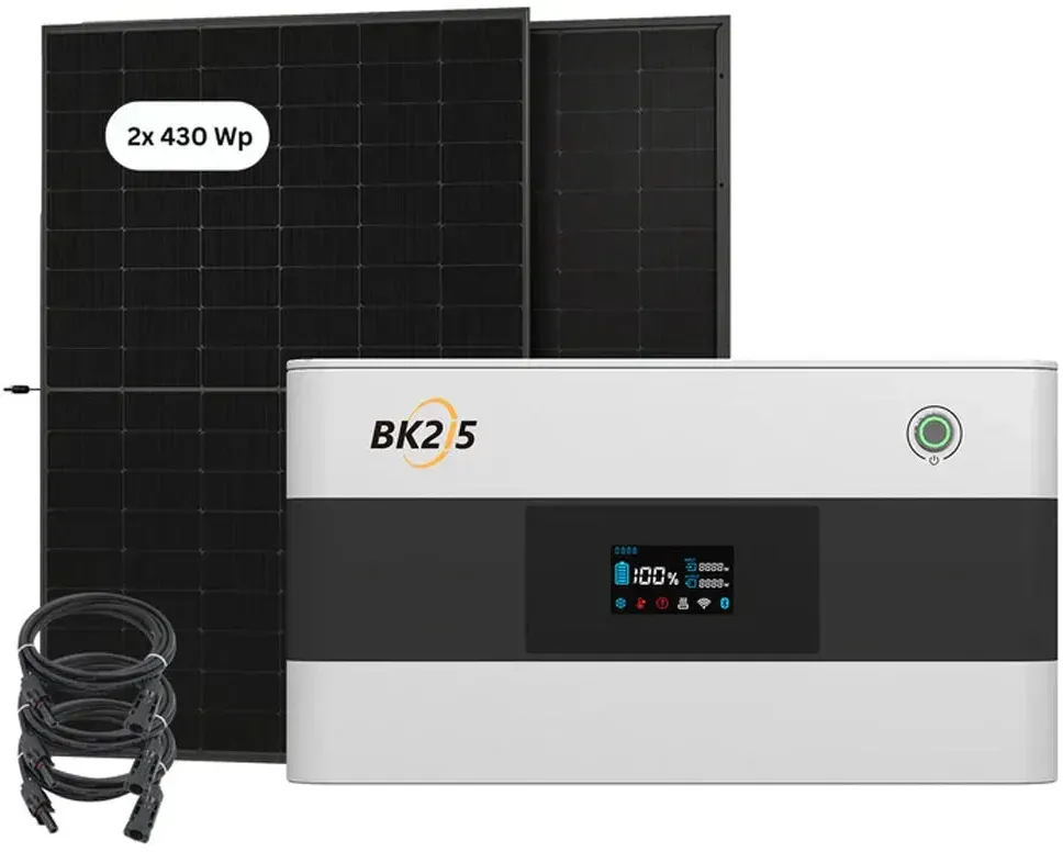 Verfügbarkeit: 4-6 Werktage - Kategorie: Solaranlagen - sovinar - GTIN:4262478841523 - SunEnergyXT Solar Balkonkraftwerk 890 Wp Komplettset 2 à 445 Watt Solarmodule, Deye 800 Watt Wechselrichter & SunEnergyXT BK215 Speicher 1. Leistungsstarkes SunEnergyXT Balkonkraftwerk 890 Wp ¢Zwei bifaziale JA Solar 445 WModule liefern gemeinsam 890 Wp perfekt zur Abdeckung von Grundlast und Tagesverbrauch im Haushalt. ¢Modernste NTyp TOPCon-Technologie sorgt für hohe Zellwirkungsgrade und exzellente Schwachlichtleistung mit bifazialem Aufbau für zusätzlichen Ertrag bei reflektierenden Flächen. ¢Die Gesamtfläche beträgt ca. 3,8 m2 ideal für die Nutzung auf Balkon, Carport oder Flachdach. 2. Deye SUNM80G4EUQ0 800 Watt MikroWechselrichter ¢800 VA ACLeistung bleibt unter der 800WFreigrenze, keine Genehmigung nötig. ¢Zwei unabhängige MPPTEingänge (3355 V, je 400800 Wp). ¢Wirkungsgrad 96,5 %, passiv gekühlt, IP67 funktioniert von 40 °C bis +65 °C. ¢Integriertes WLAN, LiveMonitoring in der SunEnergyXTApp ohne extra Gateway. ¢VDEARN 4105konformer Netz und Schnellabschaltschutz. ¢Kompakt: 280 à 190 à 40 mm bei 3 kg, 1 . 3. SunEnergyXT BK215 Stromspeicher modular erweiterbar Plug und Play ¢2,15 kWh nutzbare Kapazität, 1,92 kW Ausgangsleistung. ¢Zwei PVPorts à 800 W; insgesamt 1600 W Ladeleistung. ¢LiFePO4, 8000 Zyklen ... Dieses Sparpaket enthält den BK215 Speicher und zwei Solarmodule, was eine gute Komplettlösung für den Start ist. ![]() ![]() SunEnergyXT BK215 (2,15 kWh) Sparpaket 01 inkl. 2x 430 Wp Solarmodulen