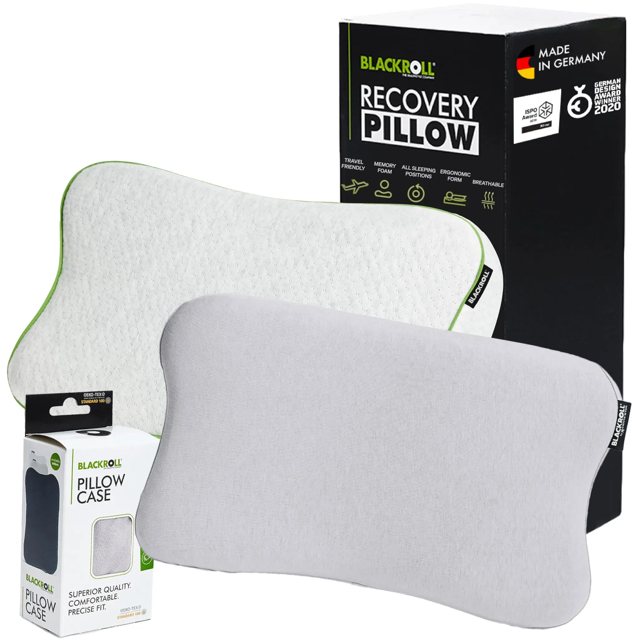 Auf Lager Versand durch AmazonBLACKROLL® Recovery Pillow Set Jersey Anthrazit, ergonomisches HWS Nackenkissen aus Memory-Foam inkl. Zusätzlichem Bezug- Made in Germany
