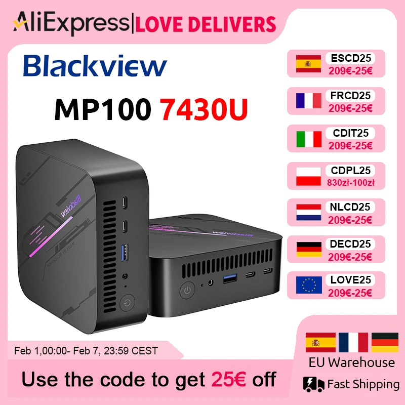 SCHWARZANSCHAUUNG - Blackview MINI PC MP100 Pro Window 11 Pro, Intel Alder Lake i3/i5/i9, 16 GB DDR4, 512 GB/1 TB M.2 SSD Mini-Desktop-PC, WiFi 6, 4K - bei de.aliexpress.com - aus Yadore Produktdaten Mit 299.67 Euro ist dieser Blackview MP100 mit AMD 7430U Prozessor, 16GB RAM und 512GB SSD eine solide und preiswerte Option für den Einstieg. ![]() Blackview MP100 NEUER Mini-PC AMD 7430U Windows 11 6-Kern 12-Thread 16GB + 512GB WiFi 6 Mini-Computer PC BT5.2
