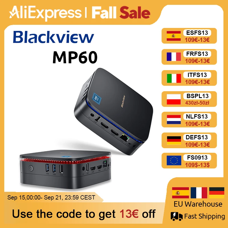 BLACKVIEW - Blackview Mini-PC MP60 Intel N150 16GB + 512GB SSD 4K 60Hz HD Doppel-HDMI Bis zu 3,6GHz 4 Kerne 4 Threads Neues Windows 11 Pro - bei de.aliexpress.com - aus Yadore Produktdaten Dieses Angebot bietet den Intel N150 Prozessor und 512GB SSD zu einem attraktiven Preis. ![]() Blackview Mini-PC MP60 Intel N150 16GB + 512GB SSD 4K 60Hz HD Doppel-HDMI Bis zu 3,6GHz 4 Kerne 4 Threads Neues Windows 11 Pro
