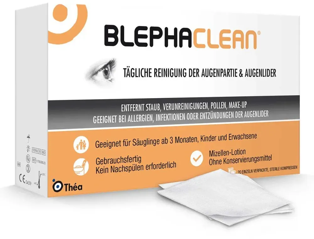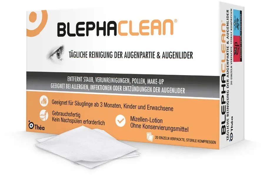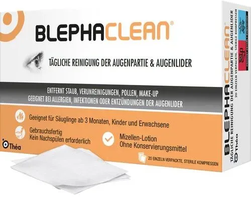 0,42 /St - Kategorie: Kompressen & Verbände - THEA PHARMA GMBH - GTIN:4150036583902 - PZN:03658390 - Blephaclean Kompressen zur Lidreinigung 20 Stück 20 St - rezeptfrei - von Thea Pharma GmbH - Kompressen - 20 St - 8,38 Euro bei DocMorris Apotheke - gefunden von billiger.de Dieses Angebot für 20 konservierungsmittelfreie Blephaclean Augenlid-Reinigungstücher ist mit 8,60 Euro eine gute und verträgliche Option. ![]() ![]() Blephaclean Augenlid - sterile Reinigungstücher eBay (20 Tücher) KONSERVIERUNGSMITTELFREI TROCKENES AUGE