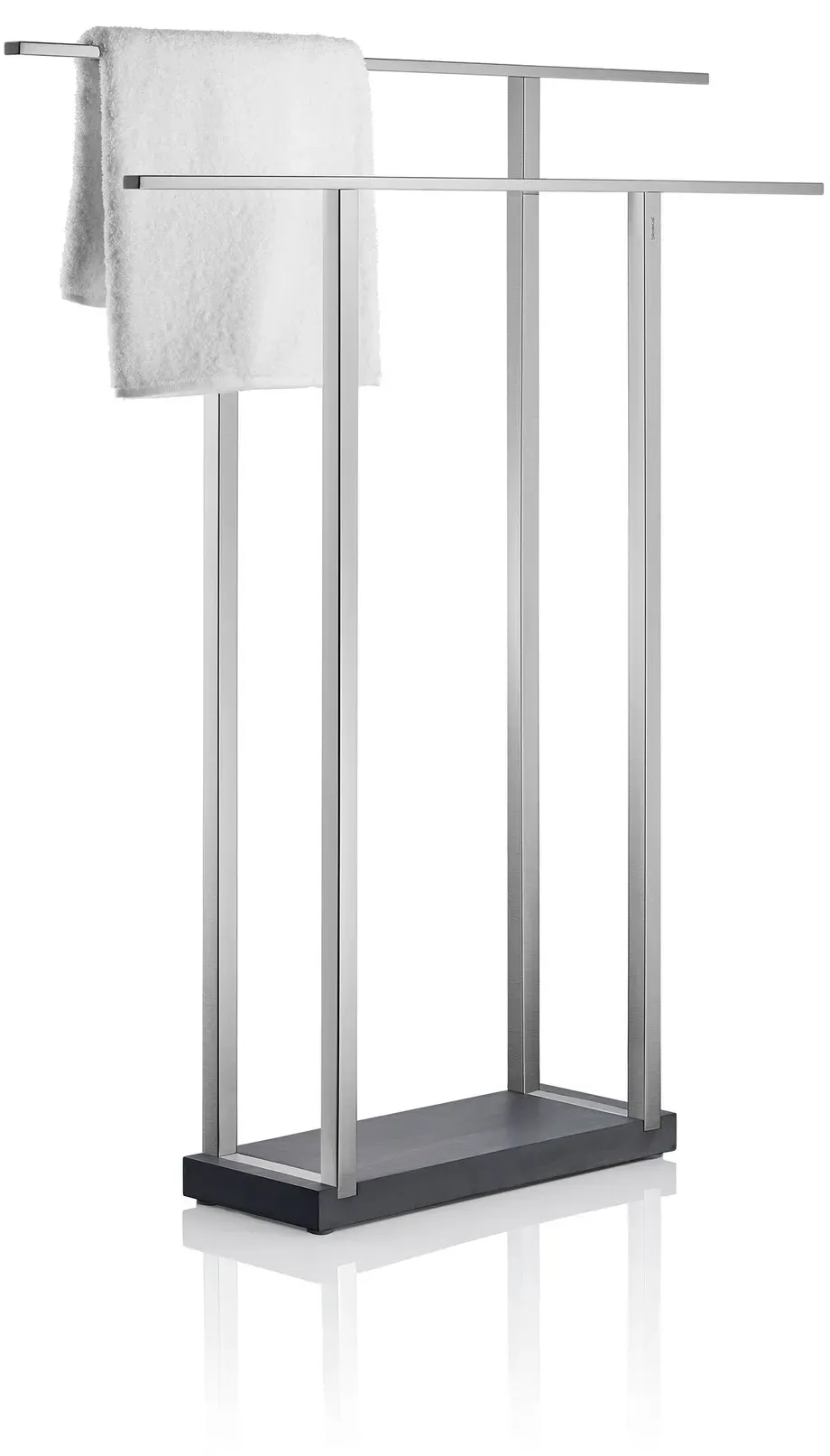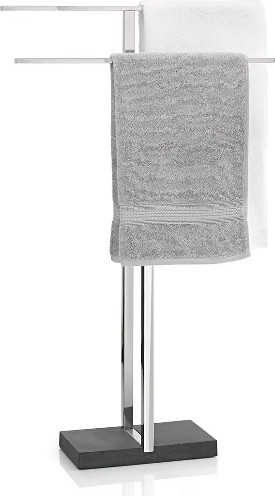 9 Händlerangebote bei billiger.de - Kategorie: Handtuchhalter - BLOMUS - Serie: MENOTO, B: 500, H: 860, T: 160, Farbe: edelstahl poliert/schiefer, Material: Edelstahl/Kunststein - GTIN:4008832686641 Dieser Handtuchständer aus poliertem Edelstahl bietet eine hochwertige und stabile Lösung für Handtücher. ![]() ![]() blomus -MENOTO- Handtuchständer aus poliertem Edelstahl, Freistehend mit 2 Handtuchstangen, exklusive Optik, modernes Badaccessoire, Montage ohne Bohren (H / B / T: 86 x 50 x 16 cm, Edelstahl, 68664)