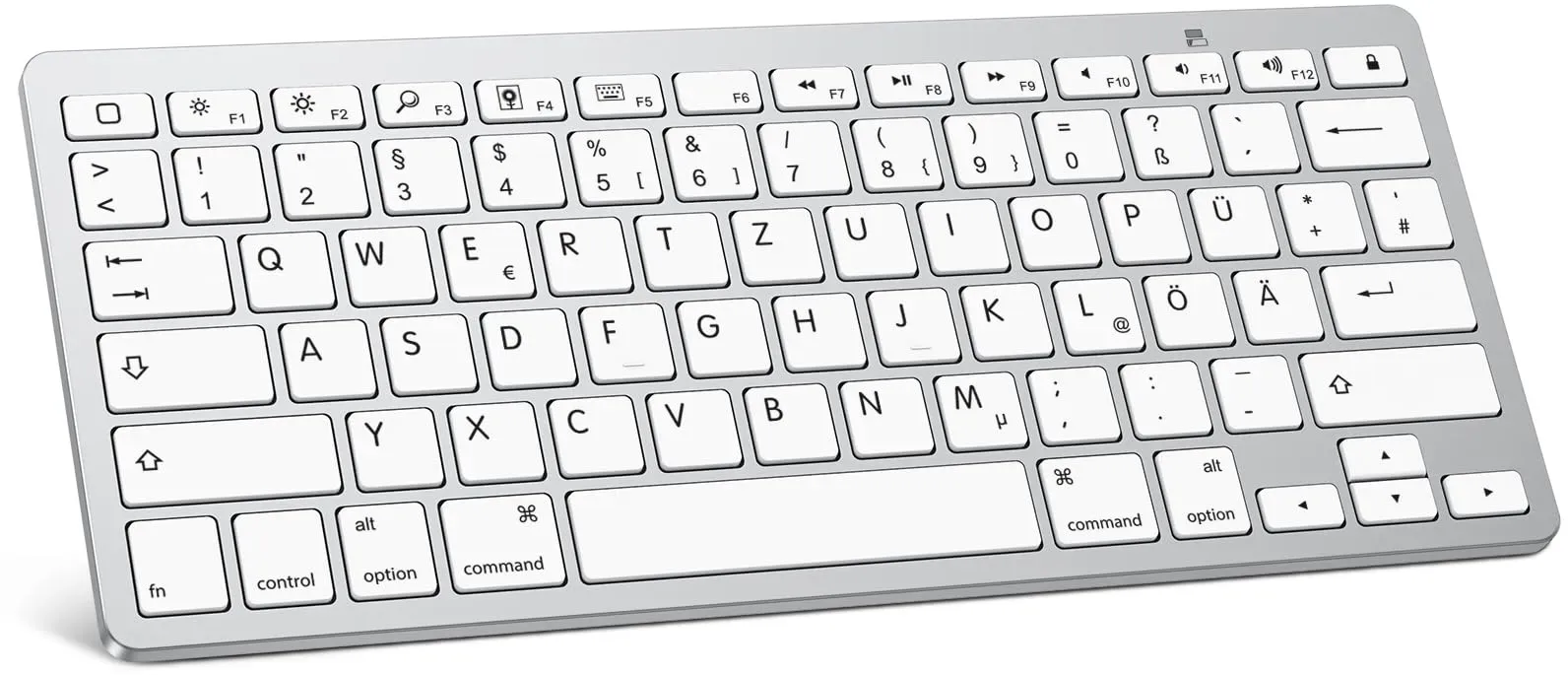Zustand: Neu - Computing & Storage - OMOTON - KB505-NEU - - WEITERE KOMPATIBILITÄT: Diese Bluetooth-Tastatur ist kompatibel mit dem neuen iPad 10,9-Zoll (10. Gen), iPad 10,2-Zoll (9./8./7. Gen), iPad Air/ iPad mini/iPad Pro 12.9/11 und allen iPhone-Geräten sowie Samsung Android-Tablets und Windows-Laptops GROSSE TASTEN UND GROSSE SCHRIFTARTEN: Diese kabellose Bluetooth-Tastatur ist mit großen Tasten und großen Schriftarten ausgestattet. Die Tasten sind 12% größer als normale Tasten, um ein präzises und flüssiges Tippen zu gewährleisten. Die iPad-Tastatur ist mit einer Handyhalterung ausgestattet, die es einfach macht, Ihr Handy entsprechend Ihrem Tippwinkel zu platzieren 7 FARBEN BELEUCHTETE TASTATUR: Diese kabellose Tastatur mit Hintergrundbeleuchtung verfügt über 7 schaltbare Hintergrundbeleuchtungsfarben, die Ihnen das Tippen in lichtlosen Umgebungen erleichtern. Die Mini-Tastatur ist mit einem Scherenschalter ausgestattet, um Ihnen ein komfortables und leises Tipperlebnis zu bieten, das Ihre Arbeit oder Ihr Spielerlebnis und Ihren Spaß verbessert WIEDERAUFLADBARE TASTATUR: Diese Bluetooth- Tablet-Tastatur verfügt über einen integrierten 500-mAh-Akku, der in 2 bis 3 Stunden wieder aufgeladen werden kann. Die Tastatur hält etwa 200 Stunden bei ausgeschalteter Hintergrundbeleuchtung und 3 bis 5 Stunden bei eingeschalteter Hintergrundbeleuchtung (ein Typ-C-Ladekabel ist im Lieferumfang enthalten) ULTRA-SCHLANGE UND TRAGBARE BLUETOOTH-TASTATUR: Diese Mini kabellose ... Diese Tastatur ist speziell für iPads optimiert und bietet ein kompaktes Design sowie ein deutsches QWERTZ-Layout. ![]() ![]() OMOTON deutsche Bluetooth Tastatur für iPad 10.9/10.2/9.7, iPad Air 6/5/4/3, Tastatur iPad Pro 13/12.9/11/10.5 und iPhone Handy, QWERTZ Layout, Kompaktes Design iPad Pro 13 Keyboard, Silber