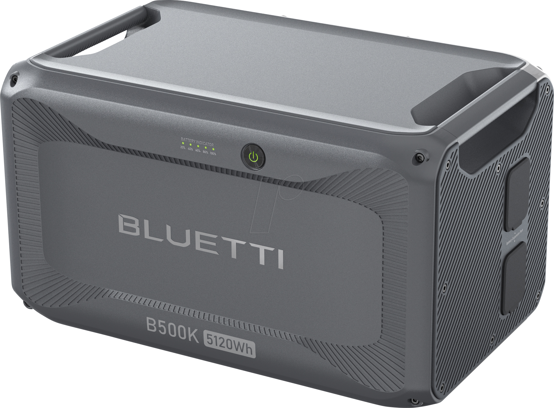 BLUETTI - EAN: 6978341871518 - Verlängern Sie Ihre Backup-Zeit Vom Schutz vor Stromausfällen bis hin zu Campingausflügen und Arbeiten ohne Netzanschluss - mit dem B500K haben Sie länger Strom und damit mehr Freiheit und Sicherheit. Bis zu 100 kWh Massive Erweiterung Erhöhen Sie Ihre Energiespeicherkapazität nach Bedarf von 5,12 kWh auf über 100 kWh*. Die B500K-Batterie ist mit verschiedenen BLUETTI- Powerstations kompatibel und ermöglicht so einfache und kostengünstige Upgrades. *Hinweis: Erreicht mit 3 Apex 300 + 18 B500K-Einheiten Anpassung an alle Ihre Bedürfnisse Der B500K erweitert entweder Ihre BLUETTI- Powerstations oder dient als Powerbank mit hoher Kapazität und ökosystemkomponenten, die eine Gleichstromleistung von 700 W für Ihre Geräte liefert. Der B500K funktioniert mit alten, vorhandenen oder zukünftigen BLUETTI-Powerstations und Erweiterungsbatterien. Sicher, zuverlässig und langlebig gemacht Das B500K verwendet fortschrittliche LiFePO4-Batterien für über ein Jahrzehnt sichere Nutzung. Sein kabelloses internes Design der dritten Generation und der effiziente Kühllüfter gewährleisten selbst unter anspruchsvollen Bedingungen eine stabile Leistung Feste oder bewegliche Einrichtung Befestigen Sie das B500K mit seinen Montagelöchern an der Wand oder am Rack Ihres Hauses oder Wohnmobils, oder bringen Sie es am Foldable Trolley 2* an, um eine mobile Stromversorgung zu haben. *Hinweis: Foldable Trolley 2 separat erhältlich. Features 5120Wh, hält bis zu 1 : Liefert ... ![]() Batterieerweiterung BLUETTI B500K, 5120Wh, für AC500 (0% MwSt)