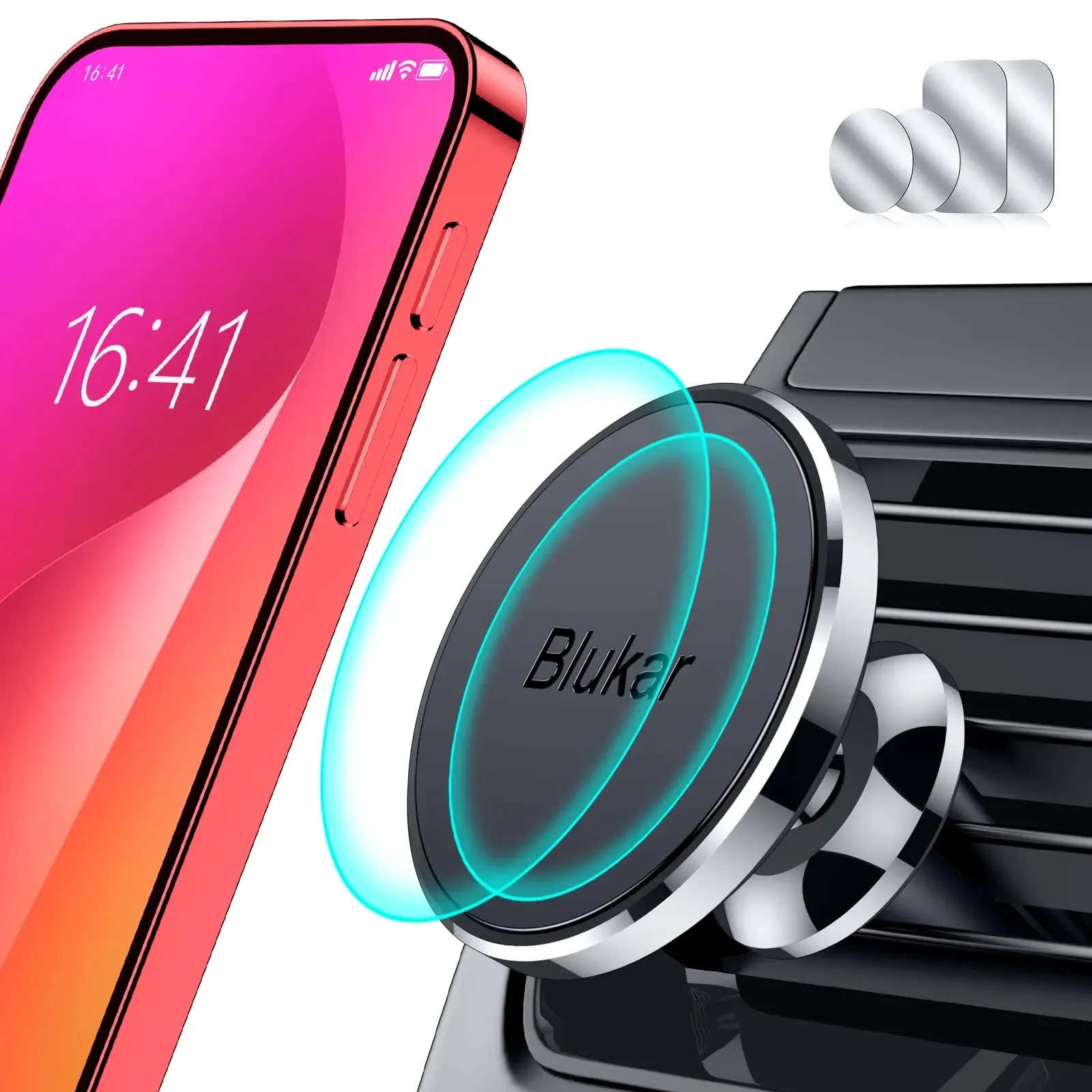 Auf Lager Versand durch AmazonBlukar Handyhalterung Auto Lüftung, Universale 360° Magnetisch KFZ Handyhalter Auto Zubehör mit 5 Starke Magnet & 4 Metallplatten, Kompatibel mit iPhone 17 Air/Pro/16/15/14, Galaxy, Mate usw.