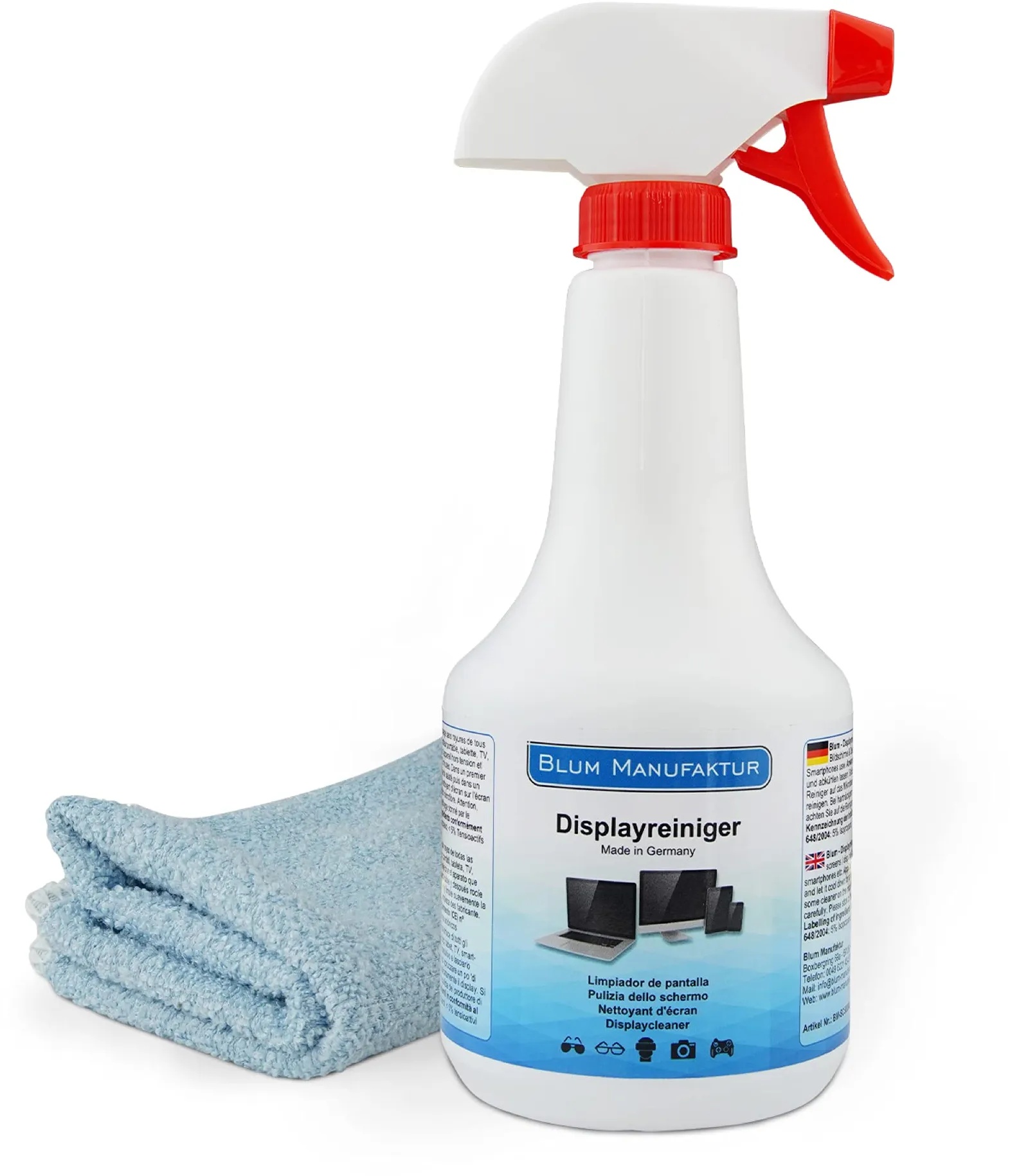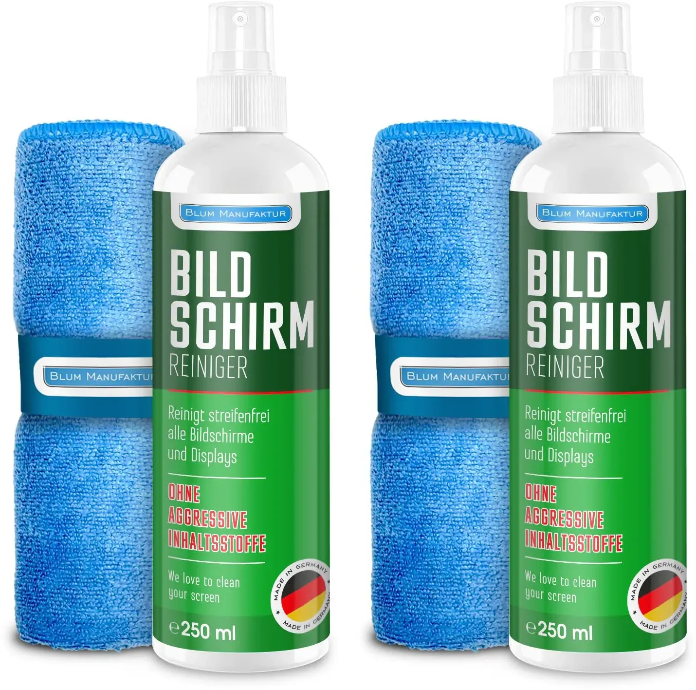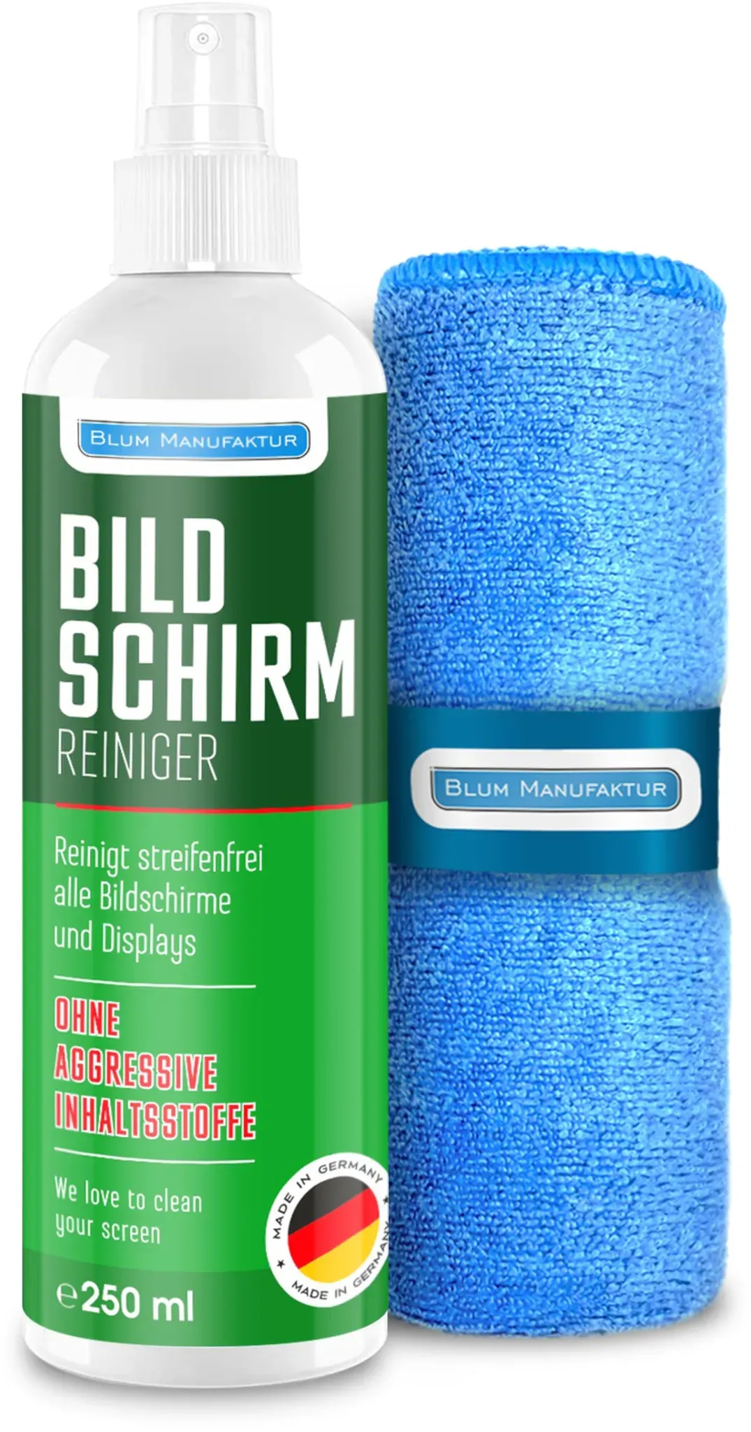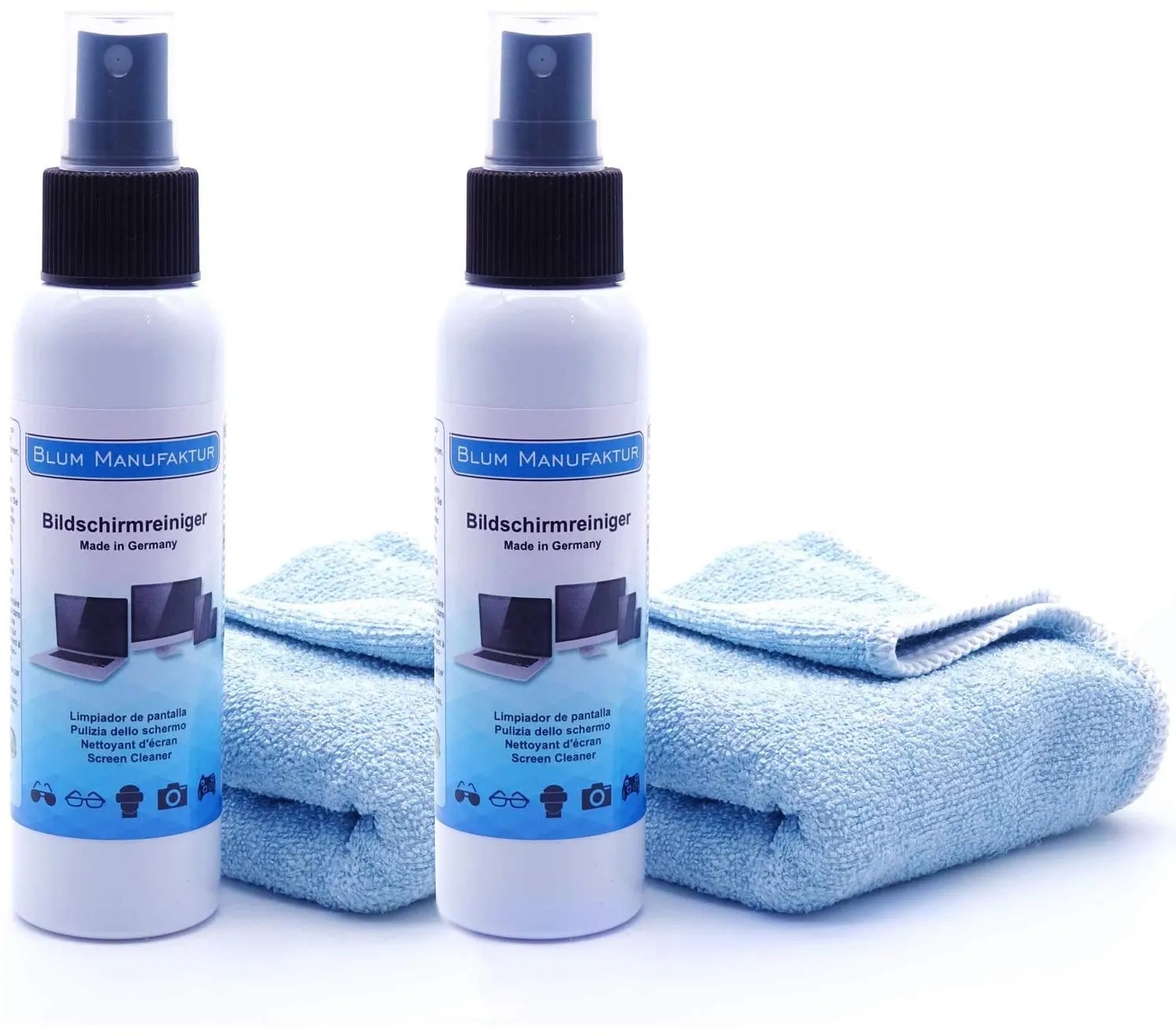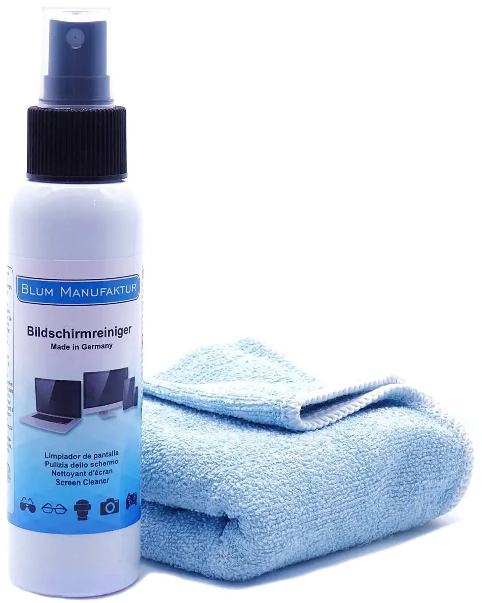 Auf Lager Versand durch AmazonBlum Manufaktur Display-Reiniger - Bildschirm-Reinigung - PC-Reiniger inkl. Mikrofasertuch 30 x 30 cm - Screen Cleaner - Made in Germany - 250 ml