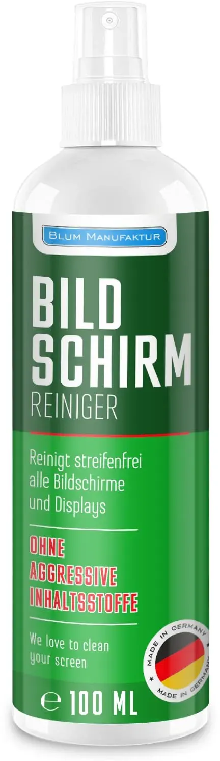 Kategorie: Reinigungsmittel - Blum Manufaktur - GTIN:0731683738347 - Lieferumfang: 1x Bildschirmreiniger 100ml Bildschirmreiniger: Made in Germany - Ein Qualitätsprodukt für höchste Ansprüche. Sehr einfach in der Anwendung. Absolut streifenfreier Glanz. Displayreiniger: Entfernt mühelos Fingerabdrücke, Schlieren, Staub und sonstigen Schmutz. Sehr angenehmer Geruch, verflüchtigt sich sehr schnell. TFT Monitorreiniger: Eignet sich auch hervorragend um TFT Monitore zu reinigen. Matte Bildschirme werden nicht angegriffen dank schonender Formel. - 8,95 Euro bei Amazon Marketplace CE - gefunden von billiger.de Für den gelegentlichen Gebrauch oder zum Testen ist dieser 50ml Bildschirmreiniger mit Mikrofasertuch eine preiswerte Option. ![]() ![]() Blum Manufaktur Bildschirmreiniger 1x 50ml + 30x30 cm Mikrofasertuch Supersoft 365GSM - Screen Cleaner - Display Reiniger - Absolut streifenfreie Reinigung von Handy, Laptop, PC, TV (50 ml)
