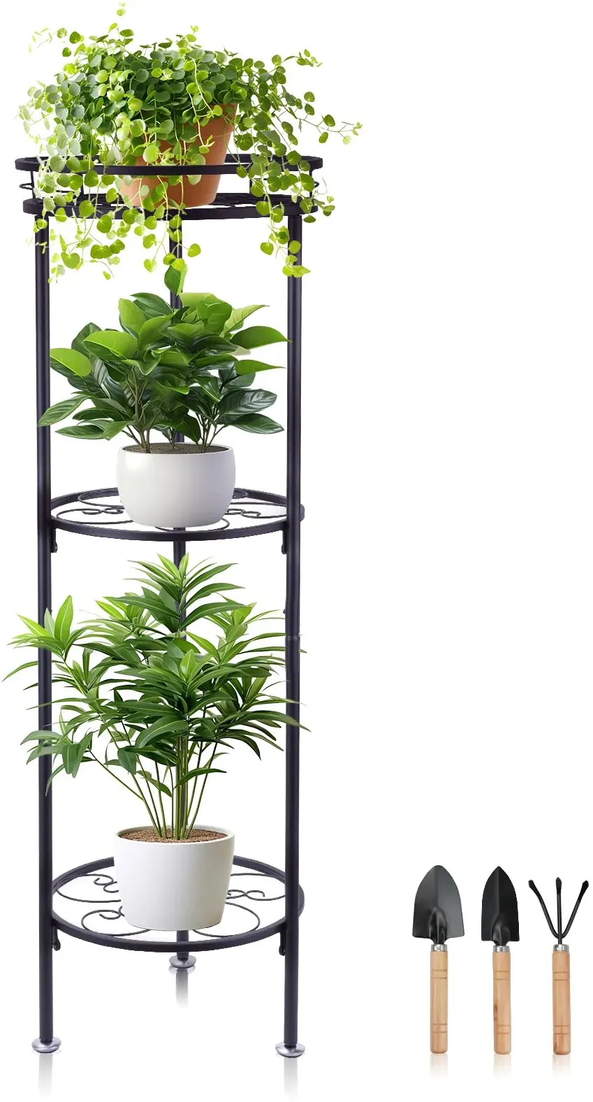 Kategorie: Pflanzenkästen & Spaliere - Mulaibdin - 3 Schicht Design: Dieser blumenständer metall hat 3 ebenen (85cm), die sie mit mehr platz zu verwenden, können sie topfpflanzen auf den unteren zwei ebenen zu platzieren, und speichern sie einige andere gegenstände auf der oberen ebene. Das stufendesign ermöglicht es jeder Ihrer topfpflanzen, das sonnenlicht zu genießen und hilft den pflanzen, besser zu wachsen. Hochwertiges Material: Dieser pflanzenständer ist aus hochwertigem eisen gefertigt, und die äußere schicht der halterung ist mit präzisionspoliertechnik behandelt, die rost verhindern und nicht verblassen kann, und hat eine starke tragfähigkeit, so dass Ihr pflanzenregal haltbarer ist. Strukturelle Stabilität: Dieser blumenständer nimmt die ober- und unterseite des integrierten eisendesigns an und ist auch mit einer reihe von rutschfesten gummifüßen ausgestattet, die die stabilität besser erhalten können. Und die ganze dieser pflanzenhocker schwarz ist abgerundete ecken design, keine scharfen ecken, müssen sie nicht über die kinder zu hause zu stoßen versehentlich in die scharfen ecken zu kümmern, können sie es mit seelenfrieden zu verwenden. Gartenwerkzeug Set Mini: Dieses blumenhocker kommt auch mit 3 langlebigen mini gartengeräte, die bequem für die lockerung der erde von topfpflanzen jederzeit sind, und seine geringe größe ist sehr geeignet für kinder, um den gesamten prozess der pflanzung und lockerung der erde zu erleben, und fühlen sie die freude an der ... Ein vielseitiger Blumenhocker mit Klappfüßen, der sich bei Bedarf leicht verstauen lässt. Manomano.d e