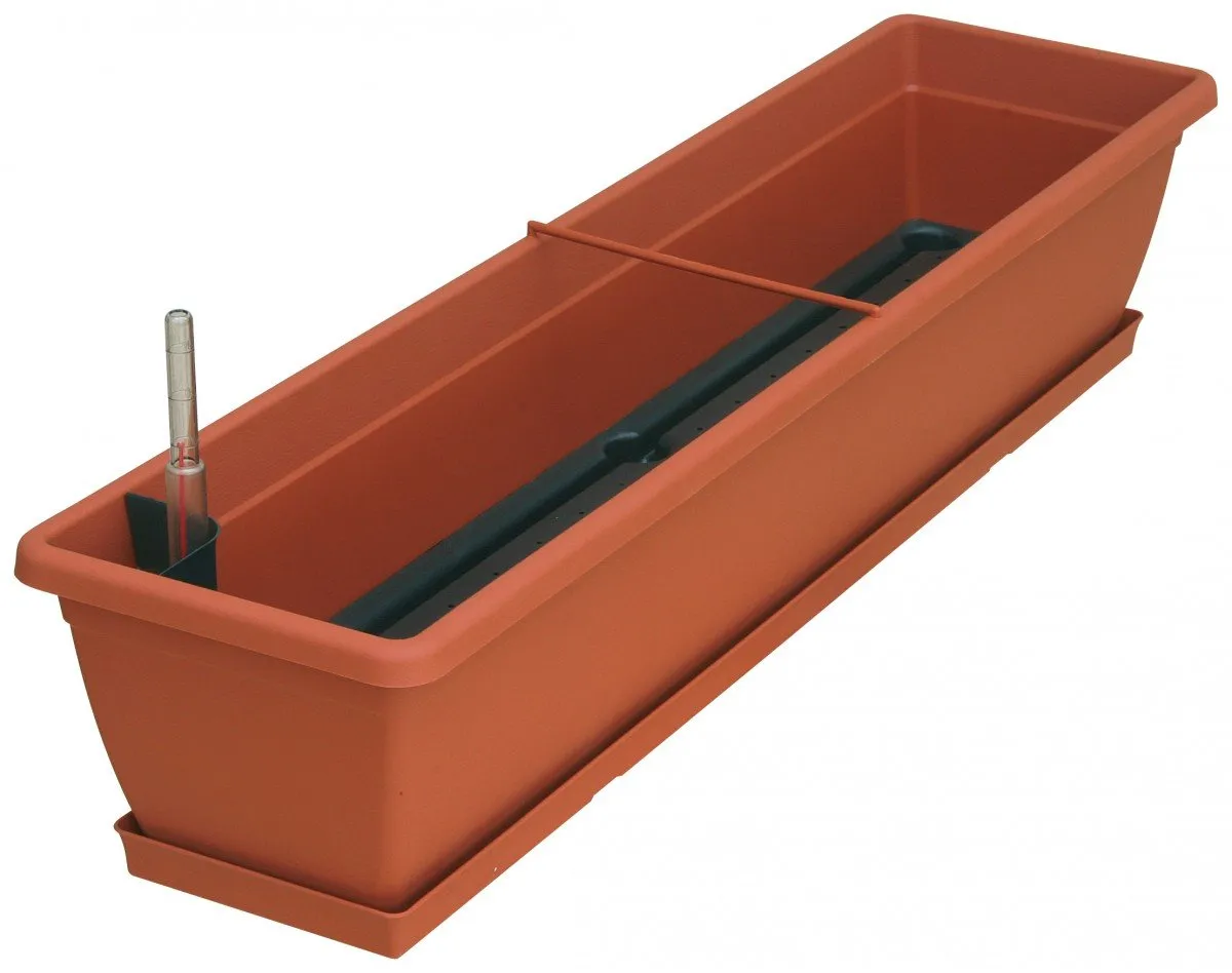 Kategorie: Blumentöpfe - Florus - GTIN:8719606016767 - Der Florus Balkonkasten Mediterran mit Bewässerungssystem ist die optimale Lösung für die perfekte Pflege Ihrer Balkonpflanzen und besticht durch sein klassisches Design. Mit dem integrierten Hakensystem befestigen Sie Ihren Balkonkasten einfach und sicher an Ihrem Balkon. Das überlaufsystem ermöglicht ein Abfließen von überschüssigem Wasser, somit bleibt die Pflanze vor Wurzelfäule geschützt. An dem integrierten Wasserstandsanzeiger können Sie mit einem Blick erkennen, ob die Pflanze genug Wasser hat. - 14,99 Euro bei OBI - gefunden von billiger.de Dieser TERAPLAST Blumenkasten bietet ein gutes Preis-Leistungs-Verhältnis und verfügt über einen praktischen Wasserspeicher. Manomano.d e TERAPLAST Blumenkasten / Pflanzkasten ''Cassetta portofino'' mit Wasserspeicher für Garten -80 cm / Terrakotta