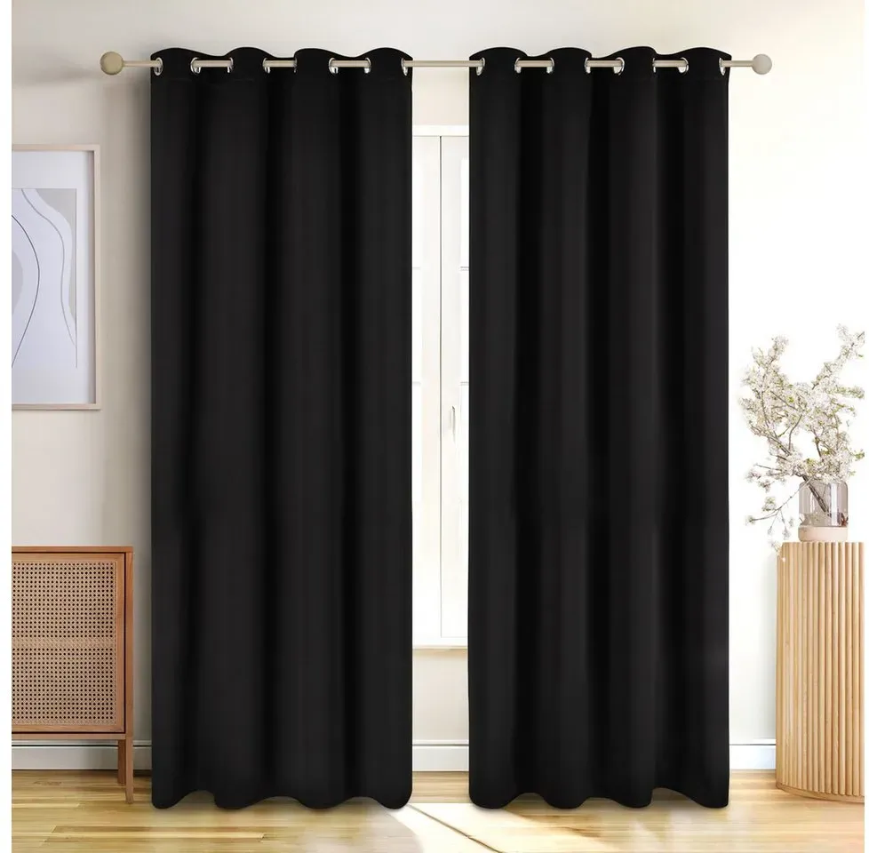 lieferbar-in 2-3 Werktagen bei dirBlumtal Verdunkelungsvorhang 2er-Set Gardinen Wärmeisolierend Blickdicht (2 St), ösen, verdunkelnd, mit ösen schwarz 117 cm x 138 cm