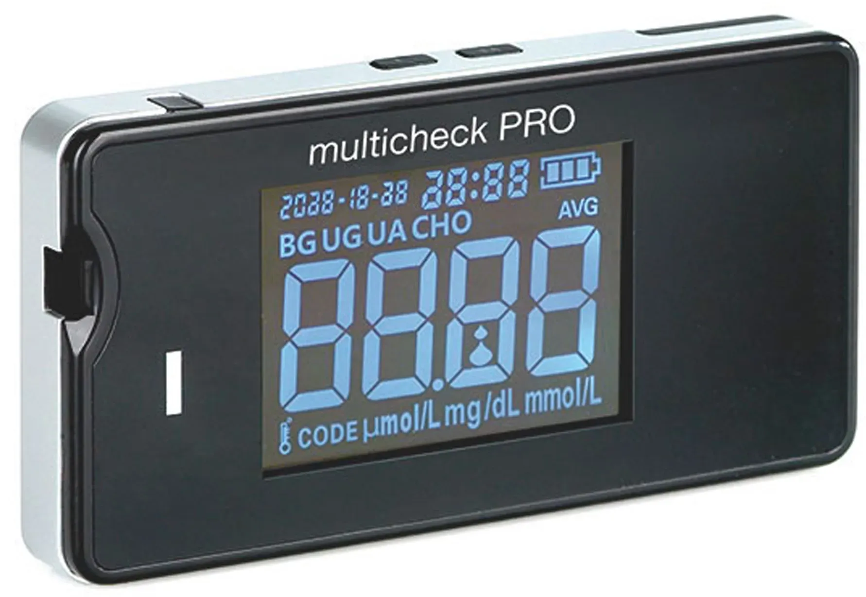 Kategorie: Blutzuckermessgeräte - Lifetouch - GTIN:4052919043025 - Lifetouch multicheck PRO ist ein Komplett-Set zur Ermittlung von Blutzucker-, Cholesterol- und Harnsäurewerten. Dank seiner kompakten Größe ist es besonders handlich und eignet sich ideal für die persönliche Kontrolle oder für die Verwendung in der Arztpraxis. nbsp;Lifetouch multicheck PRO lässt sich problemlos bedienen: nbsp;Testsensor einführen, Codierung prüfen, Blutprobe auftragen, Ergebnis ablesen und nbsp;Sensor auswerfen. nbsp;Die automatische Abwurfvorrichtung verhindert Infektionsgefahr, indem der benutzte Sensor auf Knopfdruck abgeworfen wird. nbsp;Die Messung kann nbsp;zuverlässig direkt aus Vollblut aus der Fingerbeere erfolgen: Blutzucker: für Diabetiker Harnsäure: bei Nierenproblemen, nbsp;übersäuerung und Gicht Cholesterol: bei Infarktgefahr nbsp;und Stoffwechselstörungen Technische Daten Energie: 2 x AAA Langzeitbatterien Messumgebung:&am... - 99,81 Euro bei sanismart - gefunden von billiger.de ![]() ![]() Multicheck PRO Diagnostik-Set Lifetouch