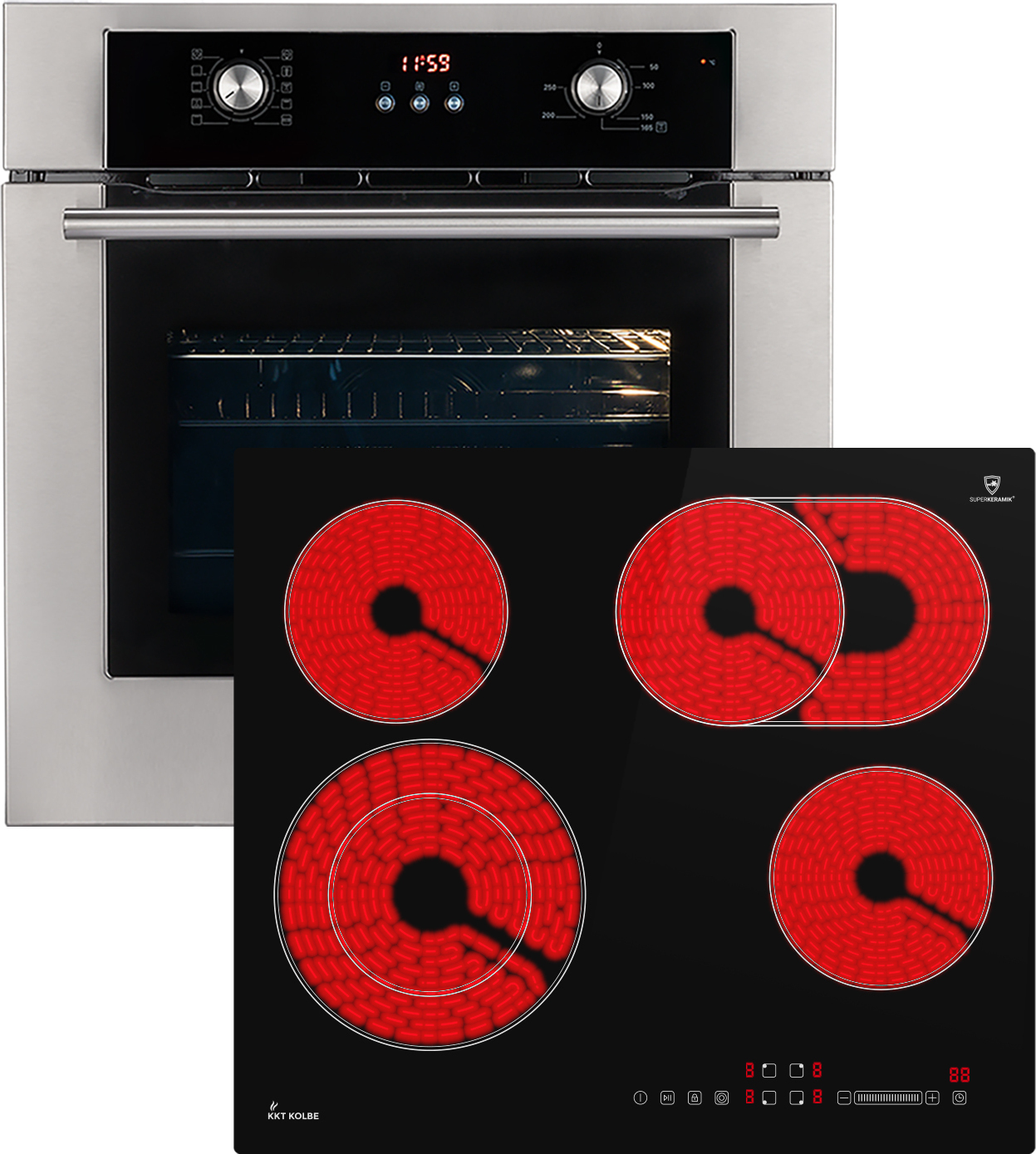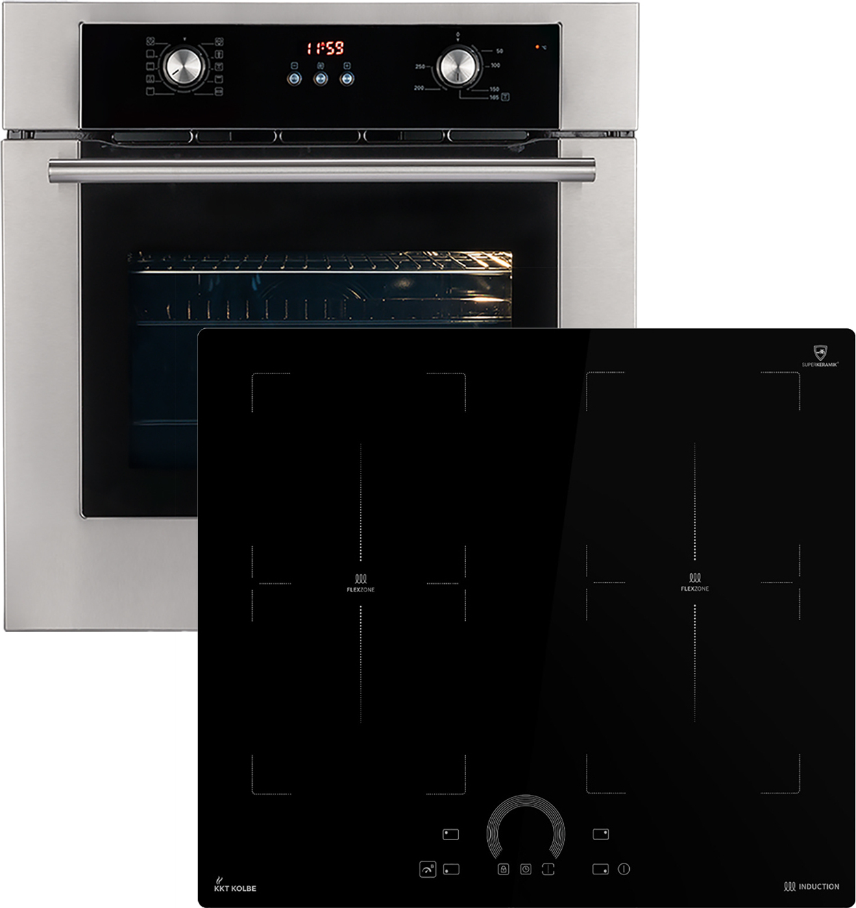 KKT KOLBE Küchentechnik - EAN: 4250477124273 - Mit diesem bekommen Sie nicht nur ein Herd-Set, sondern zwei autark funktionierende Geräte. Diese beiden Komponenten können Sie unabhängig voneinander in Ihre Küche einbauen.BO8810SSDieser zuverlässige Backofen von KKT KOLBE verfügt über tolle Features. Das Gerät kann mittels Knebeln bequem bedient werden. Eine 2-fach Wärmeschutzverglasung sorgt für eine angenehme Temperatur an der Außenscheibe. Das Gerät ist mit einer Kindersicherung ausgestattet. Dieses Modell verfügt über ein DampfClean Reinigungssystem. Dabei werden Verschmutzungen durch Dampf aufgeweicht, sodass sie sich leicht abwischen lassen. Die integrierten Teleskopauszüge sorgen für eine bequeme und einfache Handhabung mit heißen Blechen und Rosten. Dank der PowerAir Heißluft-Funktion mit Ringheizkörper erzielen Sie eine optimale Wärmeverteilung im Innenraum und erhalten perfekte Ergebnisse, egal auf welcher Backebene. In der Auftaustufe wird ihr Gefriergut schonend und schnell aufgetaut. Der Großflächengrill ist ideal für g - bei kaufland.de - aus Yadore Produktdaten ![]() ![]() KKT Kolbe SET8810IH859ED + 59cm Induktionskochfeld