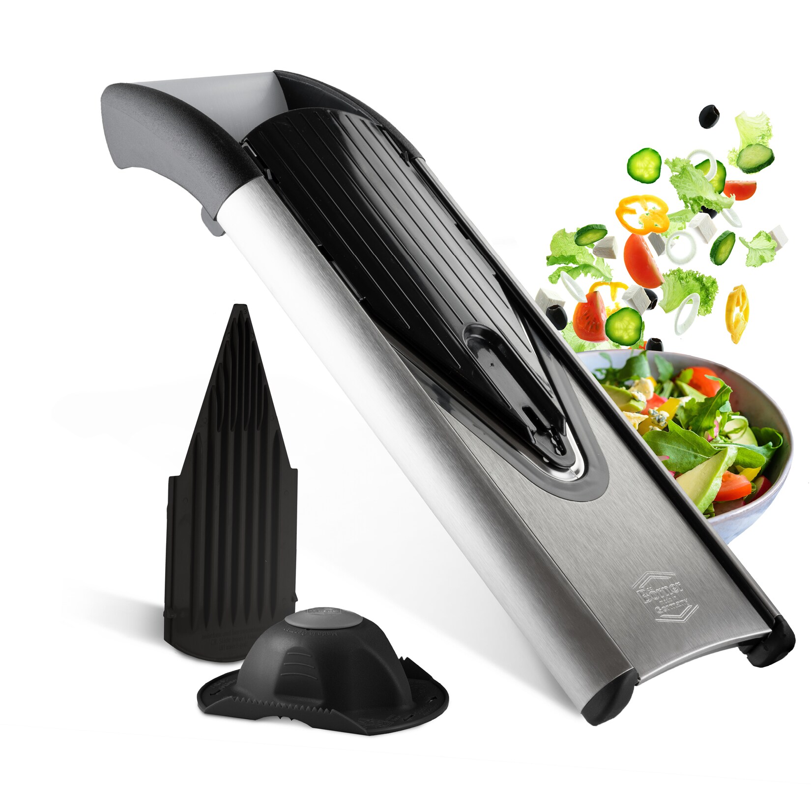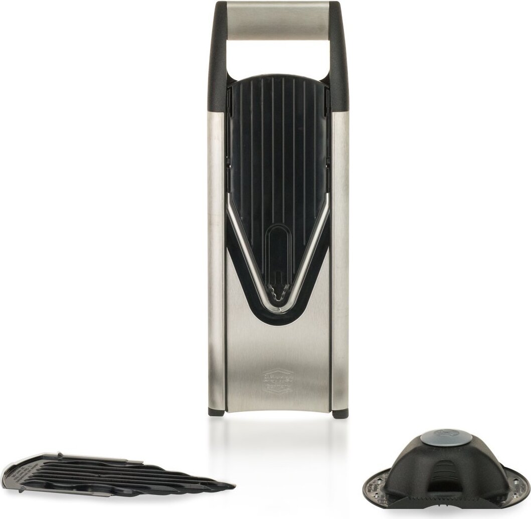 Auf Lager Versand durch AmazonBörner Gemüsehobel V6 (Basis Set) ? Edelstahl Hobel mit V-Klinge ? Verstellbarer V-Hobel für Gemüse & Obst ? Gemüseschneider für Scheiben in 3 Schnittstärken ? Inkl. Fingerschutz
