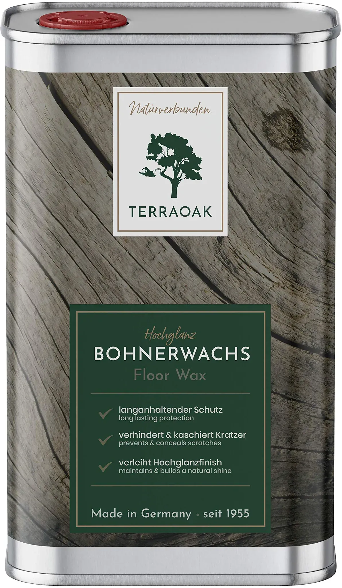 Kategorie: Waschmittel - Schutzmarke WASSERROSE - GTIN:8017790900696 - Bohnerwachs / Hartglanzwachs Weiss (farblos) Dose mit 600 g Auch bekannt als das gute alte Bodenpflegemittel Bohnerwachs / Bodenwachs / Parkettwachs / Polierwachs wie schon zu Omas Zeiten hergestellt in unveränderter Rezeptur Ebenfalls geeignet als Trennmittel/Trennwachs. Bei Abformprozessen verhindert das Wachs ein zusammenkleben der Form und Formteile z.B. bei GFK-Formen ür alle offenporigen Holzfußböden, Korkfußböden, Feinsteinfußböden, Linoleumböden, Holz, Parkett, Türen, Fensterrahmen und zur Pflege von Holzmöbel Unser Bohnerwachs ist ähnlich einer Pasta vergleichbar wie z.B. herkömmliche Schuhcrem - 16,99 Euro bei Amazon Marketplace Automotive - gefunden von billiger.de Die 1-Liter-Variante des TERRAOAK Bohnerwachses ist ideal für die regelmäßige Pflege von Parkett und Möbeln. ![]() ![]() TERRAOAK Bohnerwachs farblos flüssig 1 L Holzwachs für Parkett & Möbel Hartwachs & Holzöl zur Holzpflege & Versiegelung Möbelwachs für geölte & unbehandelte Holzoberflächen Made in Germany