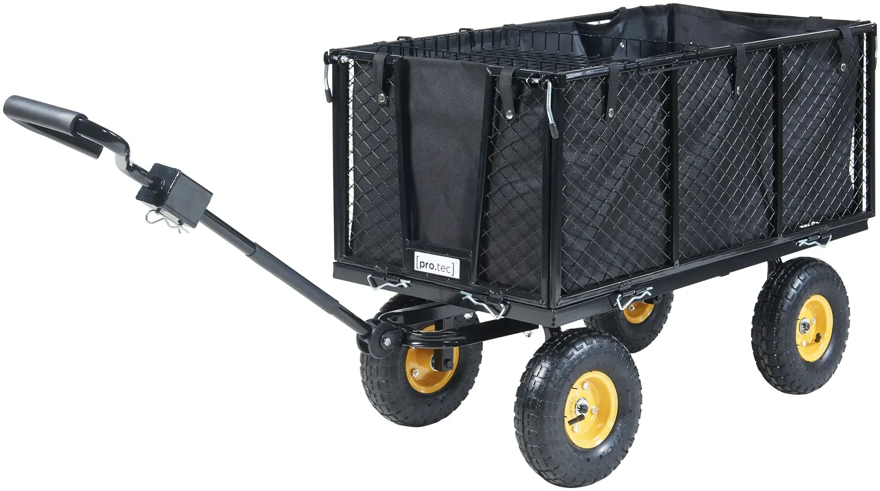 EAN: 4260649280058 - Produktvorteile Kugelgelagerte luftbereifte Profilreifen nutzbar im Haus, Garten oder an Baustellen abnehmbare Ablage zur Ladungstrennung oder als zusätzliche Trageeinheit abnehmbarer Handgriff und Kupplungsteil an der Zugstange Als Anhänger einsetzbar für Rasentraktor, Zugmaschinen usw. Aufklappbare Seitenwände mit Schnellverschluss komplett abnehmbare Seitenwände erleichtern das Be- und Entladen Innenplane lässt sich leicht abwaschen Produktbeschreibung Der Grafner Gartenwagen ist vielseitig einsetzbar, z.B. als Bollerwagen für den Ausflug, als Transportwagen, als Gerätewagen im Garten oder auch als Anhänger für den Rasentraktor. Dank der mit Schnellverschlüssen aufklappbaren und komplett abnehmbaren Seitenwände kann der Transportwagen Handumdrehen zum Plattformwagen umgebaut werden. Ebenso einfach lassen sich die Seitenwände für ein einfaches Be- und Entladen herunterklappen. Der idealen Helfer für den Garten, schwere Transporte oder Ausflüge! Achtung: Nicht für den Transport von Kindern geeignet. Kein Kinderspielzeug. Technische Daten Produkt: Grafner Gartenwagen Marke: Grafner Modell: GW10740 Material Plane: 100 % Polyester Material Gestell: Stahl Gesamtlänge (mit Kupplungsteil): 114cm Gesamtbreite: 52cm Gesamthöhe (mit Deichsel + Rädern): ca. 71cm Ladevolumen (LxBxH): 102cm x 52cm x 41cm Reifendurchmesser: 26cm max. Ladegewicht: 550 kg Lieferumfang: 1x Grafner Gartenwagen Handwagen Einlegeplane 1 x entnehmbare Ablage Aufbauanleitung ... Dieser [pro.tec]® Bollerwagen für 87,99 Euro bietet eine hohe Traglast und ein robustes Design in Schwarz/Gelb. ![]() ![]() [pro.tec]® Bollerwagen Corropoli 112x51 cm max. 550kg Schwarz/Gelb