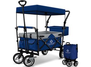 Kategorie: Bollerwagen - Sekey - GTIN:4042366812855 - EIN KOMPAKTER ALLROUNDER: Ob beim Camping, Einkaufen, auf Festivals oder im Garten – dieser faltbare Bollerwagen ist Ihr vielseitiger Begleiter für jede Situation. Erleichtern Sie sich den Transport von Ausrüstung, Einkäufen oder Gepäck. Auch als Einkaufstrolley sehr beliebt. ROBUST & BELASTBAR: Der Bollerwagen kann Lasten bis zu 80 kg tragen, daher auch sehr beliebt für Karneval, Fastnacht, Vatertag, Junggessellenabschied, Ausflüge und vieles mehr. Ein zuverlässiger Begleiter bei längeren Ausflügen mit der Familie. Hier finden nicht nur Snacks & Getränke ihren Platz, sondern auch müde Kinder die nicht mehr laufen wollen. PLATZSPAREND FALTBAR: Mit seinem innovativen faltbaren Design lässt sich der Bollerwagen Kinder mit wenigen Handgriffen ganz einfach platzsparend zusammenklappen, was ein einfaches Verstauen und Transportieren erleichtert. Perfekt für unterwegs – sei es im Auto, Wohnmobil oder Zuhause. HOCHWERTIGE & FUNKTIONALE AUSSTATTUNG: Ausgestattet mit robusten Vollgummirädern (mit Metall Feststellbremse, vordere Räder 360° drehbar), Teleskopgriff und einem stabilen Metallgestell, bietet der Bollerwagen eine einfache Handhabung und hohe Stabilität auf verschiedenen Untergründen. DETAILS: Maße: Länge ca. 75cm Breit ca. 46cm Höhe ca. 88cm // Gewicht: ca. 6,5kg // Farbe: Schwarz/Grau // Material: Metallgestell pulverbeschichtet + strapazierfähiges Oxford-Gewebe // Lieferumfang: 1x Bollerwagen faltbar //Detailmaße ... Dieser Bollerwagen ist eine preiswerte Option für den einfachen Transport ohne Dach und bietet eine gute Tragkraft von 150 kg. ![]() KESSER® Bollerwagen faltbar Handwagen Transportkarre max. 150kg Tragkraft 360° PVC-Reifen Gerätewagen inkl. 2 Netztaschen, Seitentasche Abdeckung Transportwagen Gartenanhänger ohne Dach