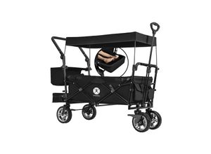 Kategorie: Bollerwagen - EVER ADVANCED - ?Design für Sicherheit?Den europäischen Sicherheitsstandard EN-1888 bestanden und aus hochwertigem Polyestergewebe und hochbelastbarem Stahlrahmen hergestellt, die für Stabilität und Langlebigkeit sorgen. Ausgestattet mit 2x5-Punkt-Sicherheitsgurt und Fußbremse für maximale Sicherheit Ihrer Kinder. Zudem bietet das abnehmbare Dach mit UV 50+ zuverlässig Schutz vor Sonne und Regen. ?All-Terrain PU Räder?Vier verbesserte gefederte PU-Räder mit Anti-Schock-System sorgen für reibungslose Fahrt. Die 360°drehbaren Vorderräder sorgen für die gute Lenkung und Flexibilität des Bollerwagens, während die 30cm Hinterräder den Wagen stabiler machen. Zentralbremse am Heck und zwei Feststellbremsen an den Vorderrädern für die optimale Kontrolle bei der Fahrt machen den Bollerwagen zum perfekten Ausflugbegleiter. ?Viel Stauraum? Der faltbare Handwagen mit großzügigen Innenraum von 80(L) x 45(B) x 38(H)cm ist ideal für 2 Kinder zu sitzen und drin spielen. Der Wickelrucksack auf der Rückseite ist ein erstaunliches Plus, um Flasche, Windel, Tücher usw. zu verstauen. Und das nützliche Snacktablett kann sowohl in der Mitte des Sitzes als auch am Schiebegriff montiert werden. Ein tolles Geschenk für Freunde, Familie oder neue Eltern. ?Ziehen & Schieben?Dieser faltbare Kinderwagenwagen verfügt über flexibler Ziehgriff und Schiebegriff, deren Höhe leicht verstellbar ist. Es ist ideal für Kindertransport und kann aufgrund des überlegenen Designs auch Ware ... Dieser luxuriöse Bollerwagen für 2 Kinder bietet höchste Sicherheit mit Sicherheitsgurt und Fußbremse, perfekt für anspruchsvolle Eltern. ![]() ![]() luxuskollektion Bollerwagen 2 Kinder faltbar Sicherheitsgurt Fußbremse Schwarz