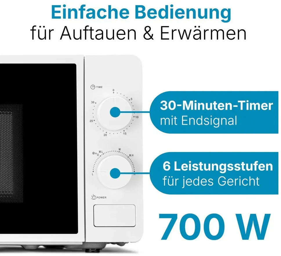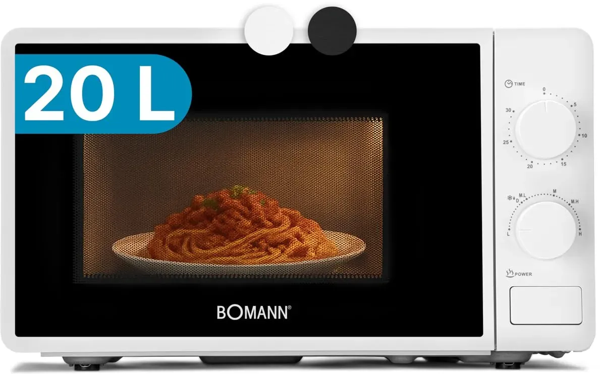 25 Händlerangebote bei billiger.de - Kategorie: Mikrowellen - Bomann - Dank der leistungsstarken 700 Watt Mini Mikrowelle von Bomann können Sie in nur wenigen Minuten köstlichen Mahlzeiten genießen - Genuss im Handumdrehen Mit den 6 Leistungsstufen und dem 30-Minuten-Timer mit Endsignal können Sie ganz nach Ihren Bedürfnissen Ihre Gerichte zubereiten oder aufwärmen - für Gerichte nach Ihren Vorlieben Der Microwave Oven biete einen großzügige 20 Liter Garraum und einen praktischen Drehteller ( 24,5 cm) - genug Platz für Ihre Lieblingsspeisen und Snacks Durch die Garraumbeleuchtung erhalten Sie bei jeder Zubereitung die optimale Sicht und Kontrolle über Ihre Gerichte Die Mikrowelle fügt sich dank des platzsparenden Designs perfekt in Ihre Küche ein und bringt stilvolle Effizienz in Ihr Zuhause ein - GTIN:4004470601411 Eine beliebte und erschwingliche Mikrowelle mit 700 Watt und 20 Litern Fassungsvermögen. ![]() ![]()