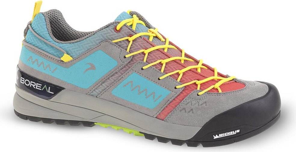 Boreal - EAN: 8435441609765 - Die Trekkingschuhe Boreal Shango haben ein leichtes Mikrofaser- und abriebfestes Mesh-Obermaterial mit PU-AirNet-Futter, das hervorragende Atmungsaktivität und Komfort gewährleistet. Eine elastische Kordel an den Knöcheln erlaubt es, die Schuhe zusammen zu schnüren, um das Verstauen am Klettergurt oder im Rucksack zu erleichtern. Shango verfügt über die neue Terra-Außensohle, eine gemeinschaftliche Entwicklung zwischen Boreal und Michelin. Diese neue Außensohle mit der haftenden Michelin-OCX-Gummimischung und dem aggressiven Laufflächenprofil bietet eine hervorragende Traktion bei jedem Wetter und eine integrierte Zehenkappe, die zusätzlichen Schutz gegen Stöße und Reibungen bietet.Eine großflächige Kletterzone an der Spitze sorgt für exzellente Kantenleistung auf technischem Terrain, während das TPU-Stück unter den Zehen Halt und Stabilität bietet. - bei deporvillage.de - aus Yadore Produktdaten deporvilla ge.de BOREAL Shango Trekkingschuhe grau/limettengrün/schwarz - 45 male
