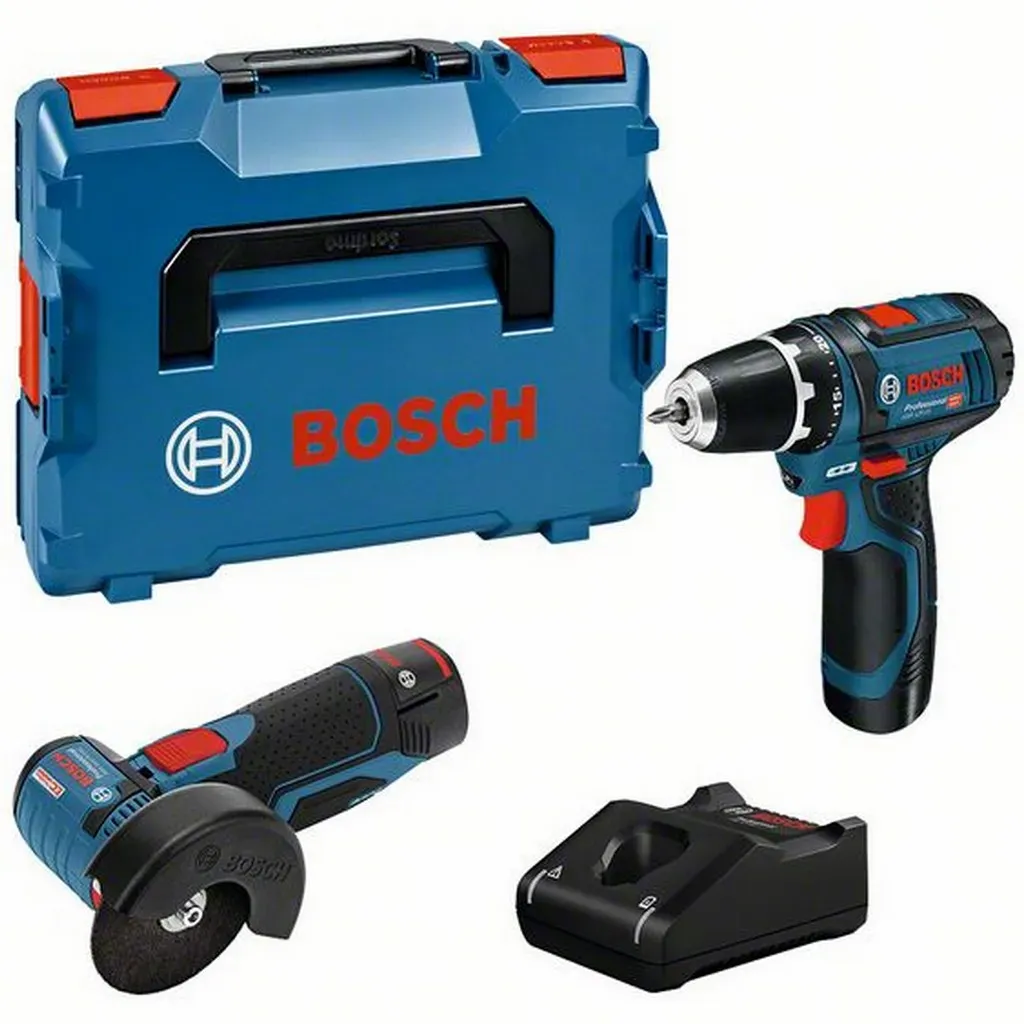 Auf Lager Versand durch AmazonBosch Professional 12V System Combo Kit: Winkelschleifer GSR 12V-15 + Bohrschrauber GWS 12V-76 (inkl. 2x 2.0Ah Akku, Ladegerät GAL 12V-40, L-BOXX)