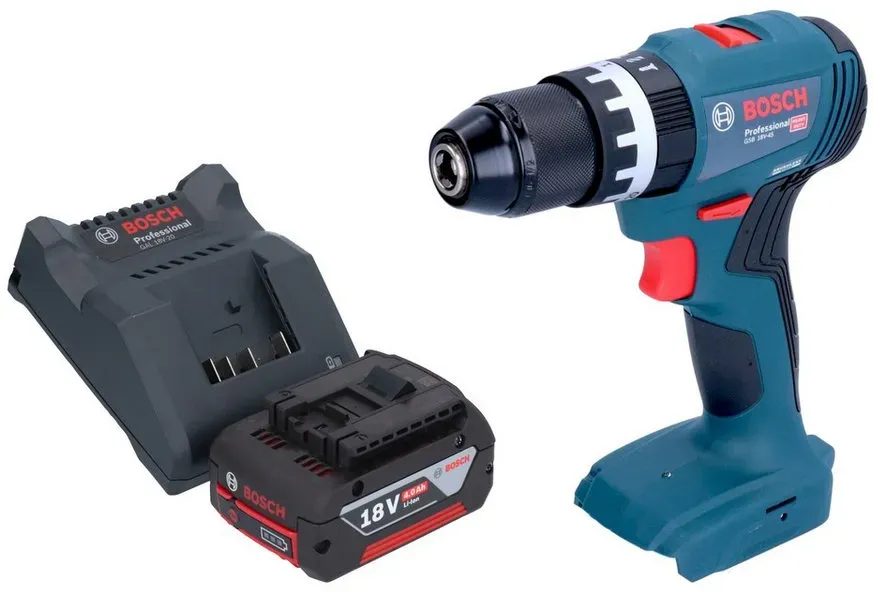 Verfügbarkeit: 1-4 Werktage - 169 €/Stück - Kategorie: Akkuschrauber - Bosch - GTIN:4059952605661 - # Der kompakteste Bosch Professional 18V-Schlagbohrschrauber mit solider Leistung Der Bosch Professional Akku-Schlagbohrschrauber GSB 18V-45 verfügt über einen bürstenlosen Motor für eine lange Lebensdauer und Power für alle gängigen Anwendungen. Er erreicht ein maximales Drehmoment (hart) von 45 Nm und eine Drehzahl von 1.900 minˆ’1. Der robuste Schlagbohrschrauber besitzt ein 13-mm-Metallfutter für eine exzellente Drehmomentübertragung bei der Arbeit. Dank seiner leichten und kompakten Bauweise mit einer Kopflänge von nur 174 mm ist er überall einsetzbar und am mitgelieferten Gürtelclip lässt er sich mühelos tragen. Der GSB 18V-45 Professional eignet sich für kleine bis mittelgroße Schrauben mit einem maximalen Bohrdurchmesser von 8 mm. Er bietet einen maximalen Bohrdurchmesser bis 35 mm in Holz und bis 10 mm in Stahl und Mauerwerk. Der Schlagbohrschrauber ist kompatibel mit allen Bosch Professional 18V-Akkus und -Ladegeräten (Professional 18V System). # AMPShare 18V Akkuallianz €“ Viele Marken. Viele Maschinen. Ein Akkusystem. Dieser Artikel ist Teil der AMPShare 18V Akkuallianz. Dabei handelt es sich um den Verbund verschiedener Profi-Marken für Handwerk und Industrie, die ein gemeinsames Akku-System für 18V Maschinen nutzen. Dieses basiert auf der Akku-Technologie von Bosch Professional. AMPShare Akkus sind damit vollständig kompatibel mit allen ... Ein attraktives Set für den GSB 18V-45 Schlagbohrschrauber mit einem 4.0Ah Akku und Ladegerät, das eine gute Balance zwischen Leistung und Preis bietet. ![]() ![]() Bosch Professional Schlagbohrmaschine GSB 18V-45 18 V 45 Nm Brushless + 1x Akku 4,0 Ah + Ladegerät