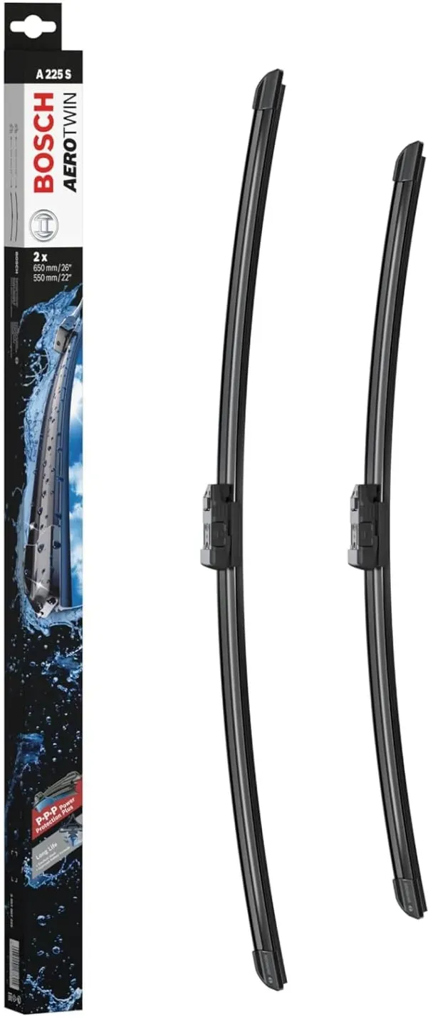 Verfügbarkeit: 1-2 Werktage - Kategorie: Scheibenwischer - Bosch - GTIN:4047024167315 - Beschreibung Die hochwertigen Scheibenwischer Bosch A225S - Scheibenwischer Aerotwin - Länge: 650/550 mm - Set für Frontscheibe bieten dir eine erstklassige Lösung für klare Sicht bei jedem Wetter. Mit ihren langlebigen Wischblättern sorgen sie für eine effektive Reinigung deiner Scheibe, egal ob bei Regen, Schnee oder Schmutz. Dank der innovativen Technologie und der Verwendung hochwertiger Materialien ren die Wischblätter von Bosch eine lange Lebensdauer und eine konstant hohe Leistung. Die schnelle Montage der Scheibenwischer ermöglicht dir eine mühelose Installation, damit du schnell wieder sicher auf den Straßen unterwegs bist. Als Qualitätsmarke steht Bosch für Zuverlässigkeit und erstklassige Produkte, die höchsten Ansprüchen gerecht werden. Vertraue auf die bewährte Qualität von Bosch und genieße klare Sicht bei jeder Fahrt. Vorteile Hervorragende Wischleistung bei jeder Witterung Längere Lebensdauer dank Power Protection Plus Leiser Betrieb sowohl bei nassen als auch bei halbtrockenen Windschutzscheiben Aerodynamisches Design: Stoppt das Anheben und Vibrationen durch reduzierten Luftwiderstand und sorgt so für mehr Fahrerkomfort und hohe Geschwindigkeit Schnelle und leichte Montage mit vormontiertem Adapter Bitte verwenden Sie den Fahrzeugkonfigurator oben auf dieser Seite, um sicher zu stellen, dass der Scheibenwischer auf Ihr Fahrzeug passt, und beachten ... Ein beliebtes Angebot im Amazon Marketplace, das die gängige Set-Konfiguration anbietet. ![]() ![]() Bosch Aerotwin A225S Front-Scheibenwischer - Set mit 2 Ersatz-Scheibenwischern und vormontiertem Adapter - 2 Wischblätter, 650 mm und 550 mm