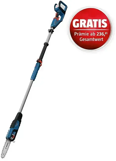 Bosch - Produkte, die als neuwertig / B-Ware klassifiziert sind, werden aufgrund von Verpackungsschäden zu einem Sonderpreis angeboten. Die Verpackung kann erhebliche Kratzer, Dellen und/oder Abnutzungsspuren aufweisen. Diese ungeöffneten Produkte sind unbenutzt, voll funktionsfähig, mit dem intakten Original Siegel und dem vollständigen Lieferumfang. Müheloses Beschneiden von ästen, ohne eine Leiter zu verwenden. Die UniversalChainpole 18 ermöglicht mit dem Teleskopstiel und dem Schwenkkopf ein einfaches Beschneiden in ansonsten unzugänglichen Bereichen. Das ausgewogene, leichte und ergonomische Design minimiert die Belastung an Armen und Schultern, während der Führungsschutz mit Stahlkrallen maximale Kontrolle beim Schneiden und Unterschneiden bieten. Die automatische Kettenschmierung und eine ölstandsanzeige sorgen für Werkzeuglaufruhe und gleichmäßige Ergebnisse. Kabellose Universal Chainpole 18: schneidet kontinuierlich, ohne Bäume zu beschädigen. - bei manomano.de - aus Yadore Produktdaten Für 91.25 Euro erhalten Sie hier ein beliebtes Modell ohne Akku und Ladegerät, perfekt als Ergänzung zu einem bestehenden Bosch 18V System. ![]() ![]() Bosch Akku Hochentaster UniversalChainPole 18 (Ohne Akku und Ladegerät, 18V System)