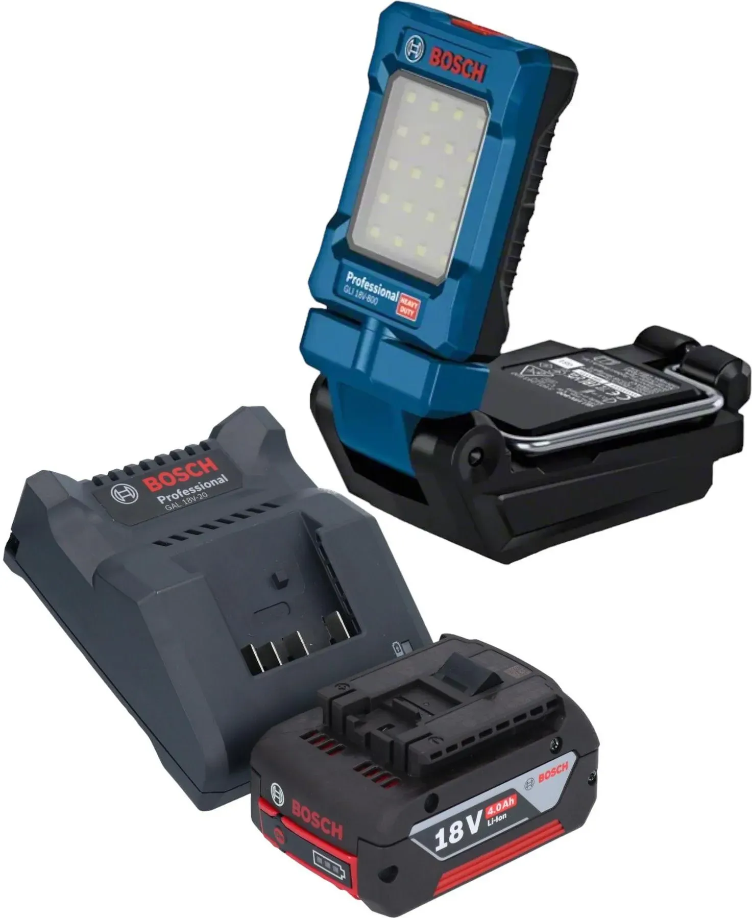4 Händlerangebote bei billiger.de - Kategorie: Werkstatteinrichtung - Bosch - Lieferumfang: - 1x Bosch GLI 18V-800 Professional Akku Leuchte - 1x Bosch GBA 18 V 4,0 Ah ProCORE Einschub Akku - 1x Bosch GAL 18V-20 Akku Ladegerät Produktbeschreibung: Die Bosch GLI 18V-800 Professional Akku Leuchte zeichnet sich durch ihre hervorragende Beleuchtungsqualität aus. Mit 20 leistungsstarken LEDs und einer Lichtstärke von bis zu 800 Lumen ist sie der ideale Begleiter für alle Arbeiten in Innenräumen. Ob in dunklen Ecken oder engen Arbeitsbereichen, die GLI 18V-800 sorgt stets für eine optimale Ausleuchtung. Dank ihres kompakten Designs lässt sich die Arbeitsleuchte problemlos transportieren und flexibel positionieren. Der starke Magnet und der Metall-Wirbelhaken ermöglichen eine vielseitige Befestigung an verschiedenen Untergründen. So haben Sie immer beide Hände frei für Ihre Tätigkeiten. Besonders praktisch ist der Klappmechanismus, mit dem die Leuchte um 360 gedreht und um 180 geneigt werden kann. Dadurch ist eine individuelle Anpassung der Lichtausrichtung möglich, um auch komplizierte Arbeitsbereiche perfekt auszuleuchten. Die GLI 18V-800 Professional ist für kleine bis mittelgroße und enge Arbeitsbereiche bestens geeignet. Sie eignet sich ideal für Elektro- und Sanitärarbeiten sowie für andere handwerkliche Tätigkeiten. Durch ihre Kompatibilität mit allen 18V-Akkus und -Ladegeräten der AMPShare-Allianz bietet sie zudem eine hohe Flexibilität und ist ein unverzichtbares Zubehör ... Dieses Angebot beinhaltet die Leuchte mit einem 4,0 Ah Akku und Ladegerät im Softbag, ideal für den mobilen Einsatz. ![]() ![]() Bosch Akku-Leuchte GLI 18V-800 / 1x 4,0 Ah + GAL 18V-40 im Softbag