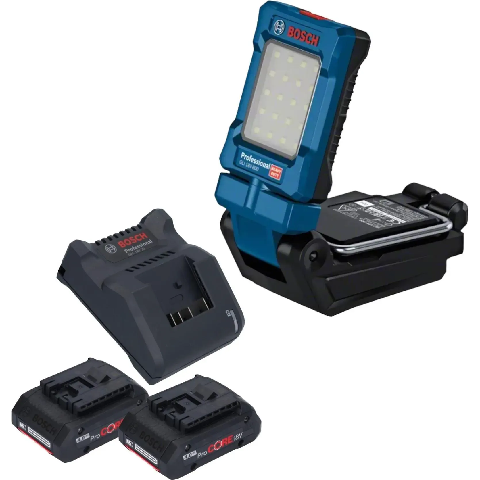 3 Händlerangebote bei billiger.de - Kategorie: Werkstatteinrichtung - Bosch - Lieferumfang: - 1x Bosch GLI 18V-800 Professional Akku Leuchte - 1x Bosch GBA 18 V / 4 Ah / 4000 mAh Li-Ion Akku - 1x Bosch GAL 18V-20 Akku Ladegerät Produktbeschreibung: Die Bosch GLI 18V-800 Professional Akku Leuchte zeichnet sich durch ihre hervorragende Beleuchtungsqualität aus. Mit 20 leistungsstarken LEDs und einer Lichtstärke von bis zu 800 Lumen ist sie der ideale Begleiter für alle Arbeiten in Innenräumen. Ob in dunklen Ecken oder engen Arbeitsbereichen, die GLI 18V-800 sorgt stets für eine optimale Ausleuchtung. Dank ihres kompakten Designs lässt sich die Arbeitsleuchte problemlos transportieren und flexibel positionieren. Der starke Magnet und der Metall-Wirbelhaken ermöglichen eine vielseitige Befestigung an verschiedenen Untergründen. So haben Sie immer beide Hände frei für Ihre Tätigkeiten. Besonders praktisch ist der Klappmechanismus, mit dem die Leuchte um 360 gedreht und um 180 geneigt werden kann. Dadurch ist eine individuelle Anpassung der Lichtausrichtung möglich, um auch komplizierte Arbeitsbereiche perfekt auszuleuchten. Die GLI 18V-800 Professional ist für kleine bis mittelgrosse und enge Arbeitsbereiche bestens geeignet. Sie eignet sich ideal für Elektro- und Sanitärarbeiten sowie für andere handwerkliche Tätigkeiten. Durch ihre Kompatibilität mit allen 18V-Akkus und -Ladegeräten der AMPShare-Allianz bietet sie zudem eine hohe Flexibilität und ist ein unverzichtbares Zubehör ... Dieses Angebot enthält die Leuchte und einen leistungsstärkeren ProCORE Akku, ohne Ladegerät, für Nutzer, die bereits ein solches besitzen. ![]() ![]() Bosch GLI 18V-800 Professional Akku Leuchte 18 V 800 lm + 1x ProCORE Akku 4,0 Ah - ohne Ladegerät