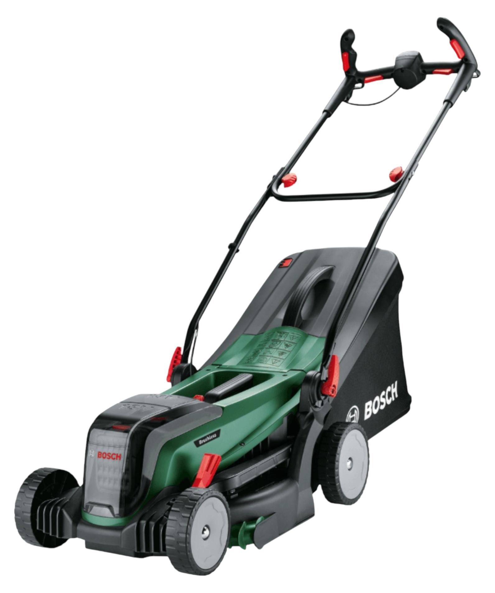 Kategorie: Rasenmäher - Bosch - GTIN:4059952641874 - HINWEIS: Bosch DIY Serie, nicht kompatibel mit der blauen Bosch 18V Professional Serie! Akku-Rasenmäher UniversalRotak 2x18V-37-550 Kraftvolles Mähen und bequeme Grasschnittsammlung für mittelgroße bis größere Rasenflächen Kraftvolles Mähen dank bürstenlosem Motor und 36V-Elektronik (2 x 18 V) Saubere Rasenflächen dank hochwertigem Textilgrasfangskorb mit Anzeige bei vollständiger Füllung Ideal zum Mähen mittelgroßer bis größerer Rasenflächen mit langem oder kurzem Gras Starke 36-Volt-Leistung von zwei 18V-Akkus Syneon Technology für optimale Kraft und maximale Laufzeit Kompatibel mit Bosch 18V POWER FOR ALL-Akku Grasbeutel 40 l mit Anzeige bei vollem Beutel Karton - 343,89 Euro bei Werkzeugstore24 - gefunden von billiger.de Dieses Angebot von OTTO Office für 383.99 Euro ist ein solides Komplettpaket mit Akkus und Ladegerät, ideal für Büros oder Heimanwender. ![]() BOSCH Akku-Rasenmäher »UniversalRotak 2x18V-37-550« 18.0 V grün, 40x105x135.5 cm