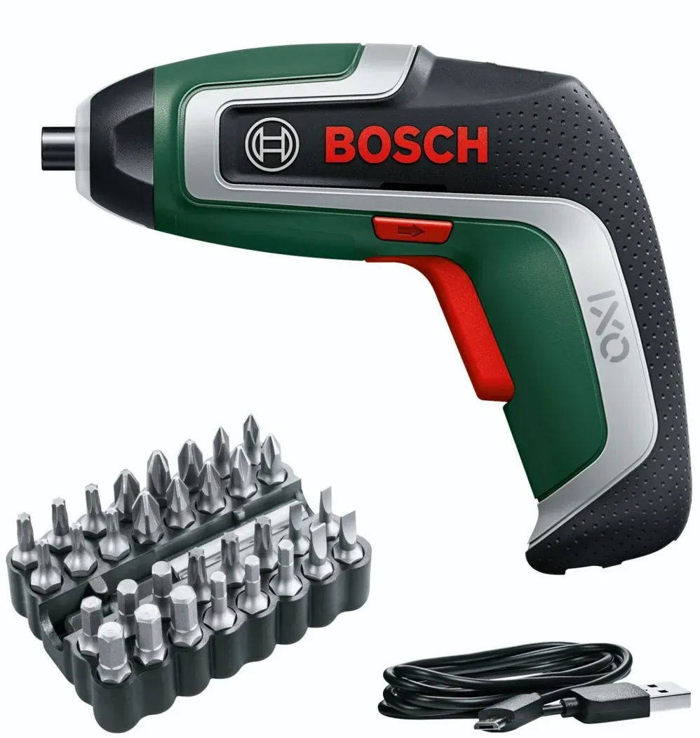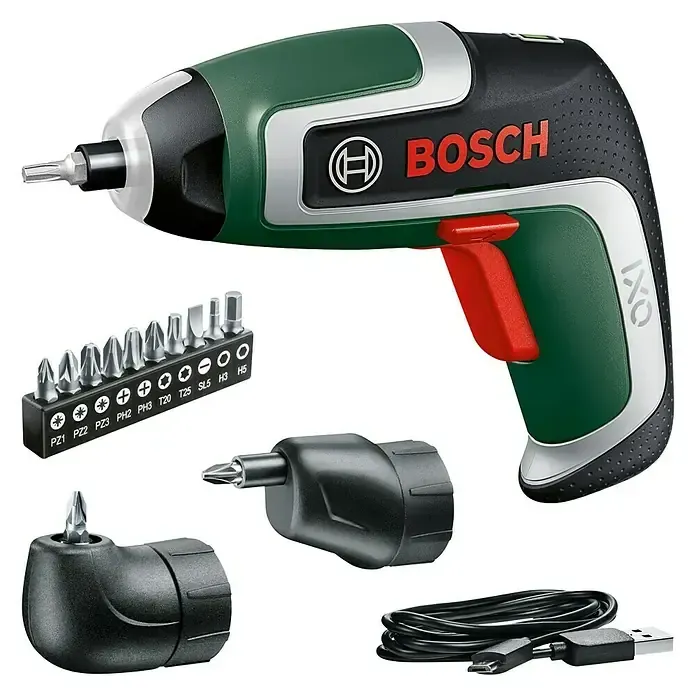 Verfügbarkeit: 1-4 Werktage - 66,98 €/Stück - Kategorie: Akkuschrauber - Bosch - GTIN:4053423234756 - # Allrounder Akkuschrauber IXO7 von Bosch im Set Der Bosch Akkuschrauber IXO 7 ist der kabellose Allrounder, der in jeden Haushalt gehört. Die neue Generation dieses Werkzeugs ermöglicht ein leichtes und reibungsloses Anziehen von Schrauben bei der Montage von Flachbau-Möbeln oder bei Reparaturen: Ein stärkerer Motor sorgt für eine höhere Drehzahl und 20 % mehr Leistung im Vergleich zum Vorgängermodell. Mit dem neuen 2,0-Ah-Lithium-Ionen-Akku wurde die Laufzeit des Geräts erhöht, sodass bei längeren, anspruchsvollen Arbeiten weniger Nachladeaufwand anfällt. Dieser Akku-Schrauber ist kompakt und ergonomisch geformt , sodass er bequem in der Hand liegt und intuitiv zu bedienen ist. Außerdem verfügt er über einen praktischen LED-360°-Lichtring für bessere Sicht und schattenfreies Arbeiten. Das Beste ist, dass der IXO auch für andere Aufgaben als das Schrauben verwendet werden kann. Die Aufsatzschnittstelle ist mit allen Aufsätzen der IXO Collection kompatibel, sodass er nach getaner Arbeit zum Beispiel zum praktischen Helfer beim Zerkleinern von Gewürzen oder Anfeuern des Grills wird. Die Set-Variante enthält: * 1 Bit-Set mit 10 Standard-Schraubendreherbits * 1 Winkelaufsatz * 1 Exzenteraufsatz * 1 Micro USB Kabel * 1 Aufbewahrungsbox - 66,99 Euro bei BAUHAUS - gefunden von billiger.de Für 69.95 Euro erhalten Sie den IXO 7 mit einem umfangreichen 32-teiligen Bit-Set, ideal für vielfältige Schraubarbeiten. ![]() ![]() Bosch IXO 7 mit 32 teiligem Bit-Set im Karton, mit USB Ladekabel, ohne USB Netzteil
