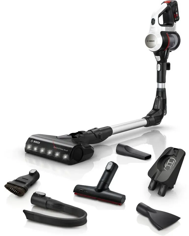 lieferbar-in 5-6 Werktagen bei dirBOSCH Akku-Stielstaubsauger Unlimited 7 BSS711W, Knickrohr, Hygiene-Filter, 10 J. Motorgarantie, beutellos, LED-Licht, hohe Saugkraft, lange Laufzeit, XXL-Polsterdüse, weiß silberfarben|weiß