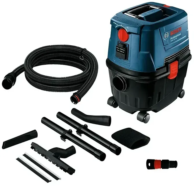 Kategorie: Nass-/Trockensauger - Bosch - GTIN:3165140829007 - BOSCH STAUBSAUGER 1100W 15L GAS 15 PS AUTOMATISCHE STECKDOSEDer GAS 15 Professional ist ein sicherer Nass- und Trockensauger.Innovative Staubbehälterhalterung, kompatibel mit universellen Haushalts- und Profi-Staubbeuteln.2 in 1, kann jederzeit vom Saug- in den Gebläsemodus umgeschaltet werden.Der Bosch GAS 15 Professional Staubsauger ist mit einem halbautomatischen Filterreinigungssystem ausgestattet, das die Leistung und Lebensdauer des Filters erhöht.SmartClick-System - ermöglicht eine einfache und stabile Schlauchverbindung.Automatische Steckdose mit Start-Stopp-Funktion.TECHNISCHE DATEN:Tankinhalt brutto 15 lluftdurchsatz (Turbine) 33 l/sunterdruck (Turbine) 22 mbarGewicht 8,0 kgINKLUSIVE:2 x SaugrohrDüse zum SchweißenKartonPlastikbeutelAntistatischer Schlauch, 3 mBodendüsen-SetAbgewinkelter Anschluss. Technische Daten: Nennleistung: 1.100 W Gewicht: 6,0 kg Bruttotankinhalt: 15 l Nettotankinhalt: 10 l Nettotankinhalt Wasser: 8 l Werkzeugmaße (Länge): 360 mm Werkzeugmaße (Höhe): 440 mm Filterfläche: 2.300 cm2 Max. Luftstrom (Turbine): 53 l/s Max. Vakuum (Turbine): 270 mbar Anzahl Räder: 4 Sicherer Staubsauger für Nass- und Trockengebrauch. Innovatives Beutelmontagesystem: kompatibel mit universellen Haushalts- und Industriebeuteln 2 in 1: Möglichkeit zum Umschalten zwischen Staubsauger- und Blasfunktion Halbautomatisches Filterreinigungssystem: sorgt für höhere Effizienz und längere Filterlebensdauer. 1 ... Ein weiteres Angebot für den Bosch Professional Nass-/Trockensauger GAS 15 PS, ideal für Werkstätten und Baustellen. ![]() ![]() Bosch Professional Nass-/Trockensauger GAS 15 PS
