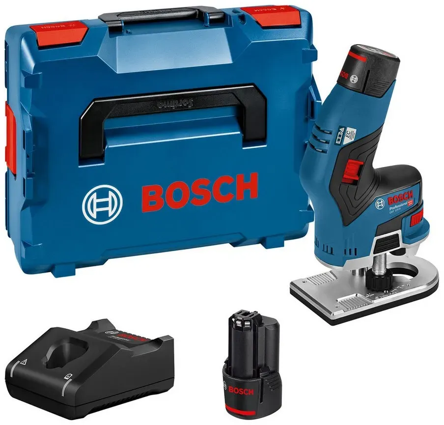 Kategorie: Fräsmaschinen - Bosch - GTIN:3165140909778 - Innovative Form, geringes Gewicht und ein idealer Schwerpunkt ermöglichen eine komfortable und ergonomische Handhabung Kompakter Aufbau dank bürstenlosem Motor und 12-Volt-System Lieferumfang: GKF 12V-8, 2x 3.0Ah Akku + Schnellladegerät GBA 12V-40, Spannzange 8 mm, Maulschlüssel 17 mm, in L-BOXX 136 - 263,99 Euro bei Amazon Marketplace Home Improvement - gefunden von billiger.de Ein attraktives Angebot mit 2x 3.0 Ah Akkus und L-BOXX, ideal für den sofortigen Start. ![]() ![]() Bosch GKF - 12V-8 Akku eBay Kantenfräse 2x3,0 Ah 12 Volt in L-BOXX