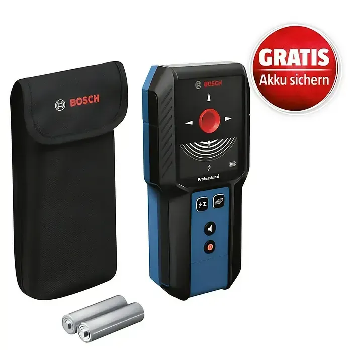 22 Händlerangebote bei billiger.de - Kategorie: Ortungsgeräte - Bosch - Ortungsgerät GMS 120-27, Beim Bohren in der Wand willst du die Arbeit erledigen und dabei sicher sein, dass du nicht auf ein Hindernis stößt. Unser Ortungsgerät GMS 120-27 Professional erlaubt eine unkomplizierte und intuitive Ortung von Objekten. Die Ortungsergebnisse werden über eine Signalanzeige auf dem Display und das farbcodierte Markierungsloch angezeigt. Das anwenderfreundliche Ortungsgerät bietet eine einfache Betriebsartauswahl, und durch das Markierungsloch lässt sich exakt markieren, wo Objekte geortet wurden. Der robuste GMS 120-27 wurde für raue Baustellen entwickelt, und ist mit Staub- und Spritzwasserschutz gemäß IP54 und einem stoßdämmenden Gummigehäuse ausgestattet. Unser Ortungsgerät GMS 120-27 Professional hilft beim Orten und Lokalisieren von Metallen, Stromleitungen und Holzbalken in Trockenbauwänden. Die Lokalisierung von Objekten in Wänden vor dem Bohren sorgt für sichereres Arbeiten, insbesondere bei Renovierungsarbeiten, wenn Schränke, Einbauküchen, Waschbecken, Kessel und Heizungsanlagen montiert oder Klima- und Sprinkleranlagen installiert werden. Dieses Ortungsgerät bestimmt nicht nur die Mitte des georteten Objekts, sondern zeigt auch seine Materialeigenschaften wie magnetisches oder nichtmagnetisches Metall, eine stromführende Leitung oder nichtmetallisches Material an. Tasche. 2 x 1,5 V LR6-Batterie (AA) - GTIN:4053423255331 Dieses Angebot ist das günstigste für ein neues GMS 120-27 (C) Universalortungsgerät und bietet ein sehr gutes Preis-Leistungs-Verhältnis. ![]() ![]() Bosch Professional GMS 120-27 (C) Universalortungsgerät (0601081700)
