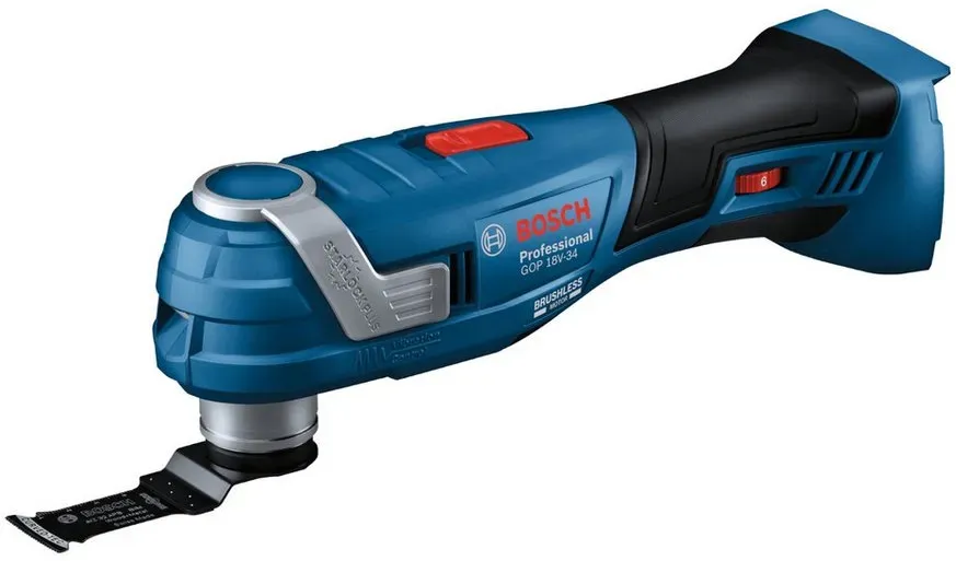 Kategorie: Multifunktionswerkzeuge - Bosch - GTIN:4059952606835 - # Komfortabler Allrounder: oszillierendes Multifunktionswerkzeug mit Starlock Plus und Vibration Control Das Bosch Professional Akku-Multifunktionswerkzeug GOP 18V-34GOP ist mit bürstenlosem Motor und pantentierten Snap-In-Arretiersystem ausgestattet. Sie können die Messer in Sekundenschnelle und ohne weitere Werkzeuge wechseln und laufe nicht Gefahr, Ihren Befestigungsstift zu verlieren. Starke Vibrationen von Oszillationswerkzeugen sind sehr unangenehm. Die Vibration Control reduziert deutlich die Vibrationen 50 % weniger im Vergleich zum Vorgänger und stellt sicher, dass Sie reibungslos arbeiten kannst und weniger ermüdest. Dank des schmalen Griffumfangs von nur 180 mm hast du die perfekte Kontrolle über dein Werkzeug und maximalen Komfort bei der Arbeit. Dieses Werkzeug haben wir für ein breites Anwendungsspektrum entwickelt. Es ist ideal für Tauchschnitte, zum Zuschneiden und zum Schleifen von Holz. Du kannst es auch zum Schneiden von PVC oder Metall, zum Entfernen von Mörtel zwischen Fliesen oder sogar zum Abkratzen von Rückständen verwenden. Kompatibel mit allen Starlock und Starlock Plus Zubehören. Kompatibel mit dem Bosch Professional 18V System und mit der markenübergreifenden AMPShare Akku-Allianz. Schutz gegen Verbrennungen an den Fingern: Das Getriebegehäuse ist gut isoliert und Sie können Messer kontaktfrei wechseln, ohne dass Sie heißes Zubehör anfassen müssen. Den Hebel für den Messerwechsel ... Ein preiswertes Solo-Gerät, das sich gut für Anwender eignet, die bereits Akkus und Ladegeräte besitzen. ![]() ![]()