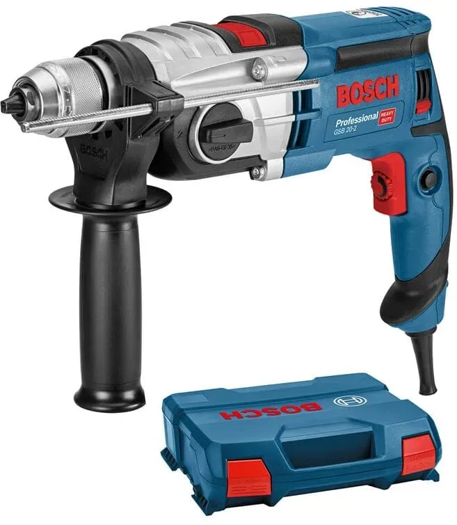 Auf Lager Versand durch AmazonBosch Professional Schlagbohrmaschine GSB 20-2 (Leistung 850 Watt, Leerlaufdrehzahl 3.000 min-1, inkl. Tiefenanschlag, Schnellspannbohrfutter, Zusatzhandgriff, L-Case)