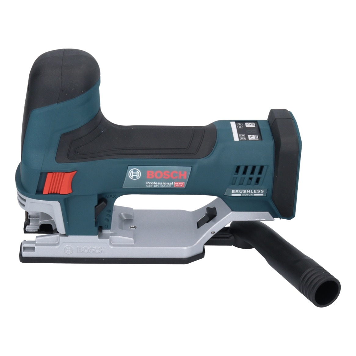 Bosch Professional - EAN: 4059952545837 - BOSCH Professional GST 18V-155 SC Akku-Stichsäge: mit Präzision und Leistung sägenDas BOSCH Professional GST 18V-155 SC Akku-Stichsäge ist das ultimative Gerät für anspruchsvolle Handwerker und Profis. Mit dieser hochwertigen Stichsäge erledigen Sie Ihre Sägearbeiten mit Präzision und Leichtigkeit.Leistungsstark und vielseitigDie GST 18V-155 SC bietet eine variable Hubzahl von 800 - 3.800 Hüben pro Minute im Leerlauf, um Ihre Anforderungen perfekt zu erfüllen. Die Schnitttiefe beträgt beeindruckende 155 mm in Holz, 10 mm in Stahl und 20 mm in Aluminium.Werkzeugloser SägeblattwechselDer werkzeuglose Sägeblattwechsel ermöglicht Ihnen ein schnelles Umrüsten für verschiedene Materialien und Anwendungen.Pendelung und StaubabsaugungDie integrierte Pendelungsfunktion sorgt für schnelle und präzise Schnitte. Die Staubabsaugung mit Abdeckhaube und Absaugdüse hält Ihren Arbeitsbereich sauber und ermöglicht eine klare Sicht auf die Schnittlinie.Integrierte ArbeitsleuchteDie eingebaute Arbeitsleuchte beleuchtet den Arbeitsbereich optimal, selbst bei schlechten Lichtverhältnissen.Umfangreiches SetIm Lieferumfang enthalten ist nicht nur die Stichsäge, sondern auch 1x Stichsägeblatt T 144 DP Precision for Wood, 1 x Stichsägeblatt T 308 BP Precision for Wood, Abdeckhaube Staubabsaugung, Absaugdüse, Spanreißschutz.Mit der BOSCH Professional GST 18V-155 SC Akku-Stichsäge sind Sie für jede Herausforderung gerüstet bestellen Sie sie jetzt hier online. ... Ein sehr günstiges Solo-Gerät, perfekt für alle, die bereits im Bosch 18V System sind und nur die Stichsäge benötigen. ![]() ![]() Bosch Professional GST 18V-155 SC (06015B0001)