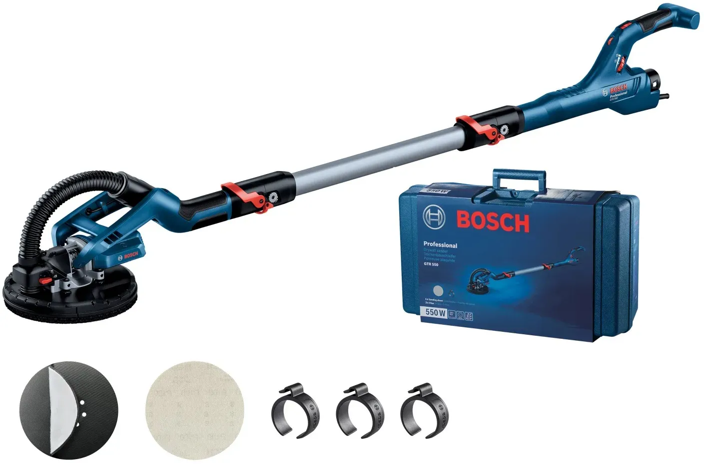 Auf Lager Versand durch AmazonBosch Professional Trockenbauschleifer GTR 55-225 (550 Watt, Schleifteller-Ø 215mm, inkl. 1x Schleifblatt M480, 1x Schleifteller-Set weich, 3x Kabelclip, Handwerkerkoffer)
