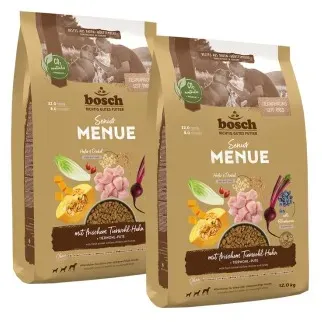 18 Händlerangebote bei billiger.de - Kategorie: Hundefutter - Bosch Tiernahrung - bosch SENIOR ist stark energie-, eiweiß- und mineralstoffreduziert und kommt somit den Ernährungsbedürfnissen älterer Hunde ab dem 7. / 8. Lebensjahr entgegen. Der reduzierte Energiegehalt (nur 6 % Fett) bei gleichzeitig erhöhtem Gehalt an .. - GTIN:4015598013567 Ein preiswertes Angebot für eine 1 kg Packung, um die Akzeptanz des Futters zu testen. ![]() ![]() Bosch HPC MENUE Senior mit Tierwohl-Huhn + Dinkel & Hafer| Hundetrockenfutter für ältere Hunde Aller Rassen | 1 x 1 kg
