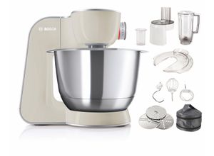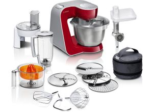 Mixer Küchenmaschinen Wohnen Küchenkleingeräte - - Bestseller. Die starke Küchenmaschine in mineral grey / silber für vielfältigen Einsatz beim Kochen und Backen. Besonders einfache Verarbeitung auch von großen Mengen von bis zu 1 kg Mehl plus Zutaten dank kraftvollem Motor mit 1.000 Watt. Ausgestattet mit umfangreichem Zubehör., Technische Daten: Kabellänge: 1,1 m, Leistung: 1000 W, WEEE-Reg.-Nr. DE: 57.986.696, Handhabung Komfort: Kabelaufbewahrung: Kabelstaufach, Standardzubehör: Mitgelieferte Arbeitsscheiben: 1x Raspelwendescheibe, fein/grob (Edelstahl), 1x Schneidwendescheibe, grob/fein (Edelstahl), 1x Raspelscheibe, mittel (Edelstahl), Mitgelieferte Rührelemente: 1x Rührbesen (Kunststoff/Edelstahl), 1x Schlagbesen (Kunststoff/Edelstahl), 1x Knethaken (Kunststoff/Edelstahl), Mitgelieferte Rührschüsseln: 1x Schüssel (Edelstahl), Mitgeliefertes Zubehör: Zubehörtasche, Digitales Rezeptbuch durch QR-Code auf der Verpackung, Passendes separat bestellbares Zubehör (Artikelnummer/Herstellerbezeichnung): Weiteres Zubehör gleich mitbestellen: Bestell-Nr. 544490 Küchenmaschinenschüssel »MUZ5ER2«, Bestell-Nr. 45051557 Multizerkleinerer-Set 5-in-1, MUZ45XTM1, Bestell-Nr. 287893 Getreidemühlenaufsatz MUZ5GM1, Bestell-Nr. 647949 Eisbereiteraufsatz MUZ5EB2, Bestell-Nr. 446020 Multizerkleinerer MUZ5MM1, Bestell-Nr. 30041230 Zitruspressenaufsatz MUZ5ZP1, 25494530 Nudelwalzenvorsatz Lifestyle Set PastaPassion MUZ5PP1, Bestell-Nr. 787225 Würfelschneideraufsatz MUZ5CC2, Bestell-Nr. ... Ein Topseller der Serie 4 mit umfangreichem Zubehör wie Mixer, Fleischwolf und Zitruspresse, ideal für vielseitige Anwendungen. ![]() BOSCH Küchenmaschine 'Serie 4 MUM56740, Durchlaufschnitzler/Mixer/Fleischw./Zitr.presse, rot', rot (deep rot), B:28cm H:28,2cm T:27,1cm, Küchenmaschinen, Schüssel 3,9l Edelstahl, spülm.fest, 4 Scheiben, 3 Rührwerkzeuge, Küchenmaschine, Topseller